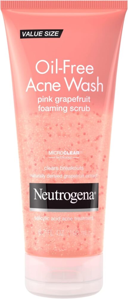 Neutrogena Oil Free Pink Grapefruit Acne Face Wash with Vitamin C, 2% Salicylic Acid Acne Treatment, Gentle Foaming Vitamin C Facial Scrub to Treat & Prevent Breakouts, 6.7 fl. oz