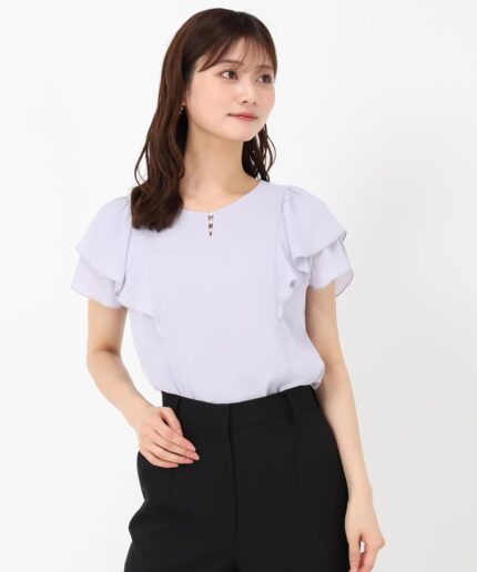 Price: (as of – Details) A blouse with a pearl at the neck for a subtle accent. Fluffy ruffled sleeves