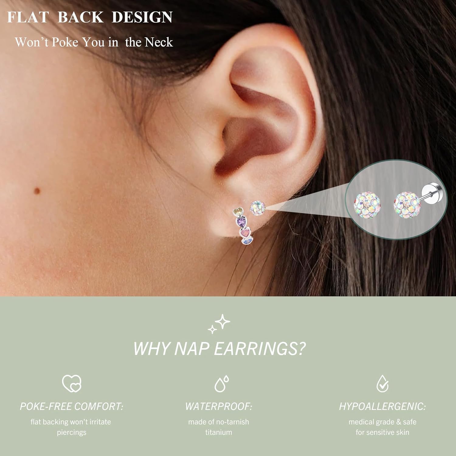 Be the first to review “10/12 Pairs Hypoallergenic Flat Back Earrings – Stainless Steel Set for Sensitive Ears – Cute Girls & Toddler Earrings” Cancel reply