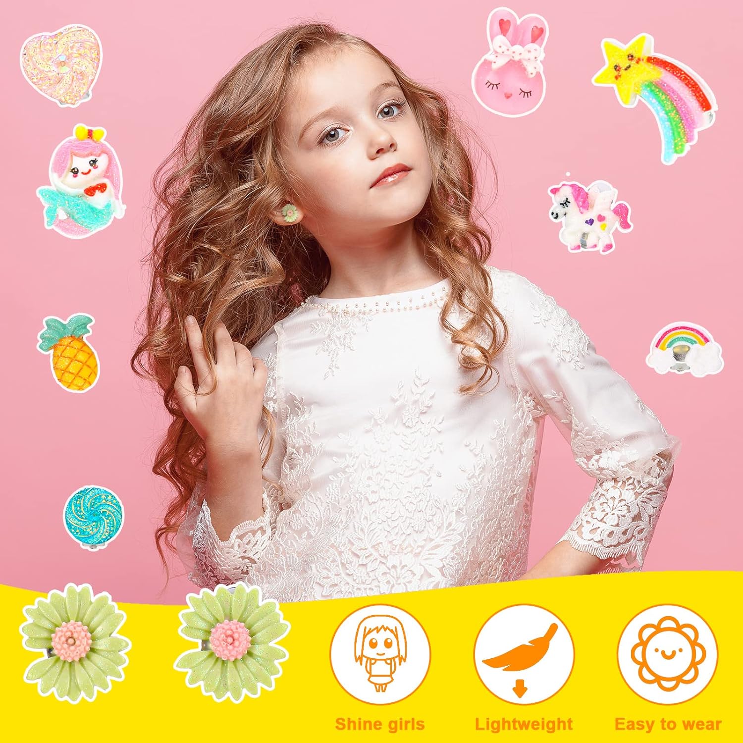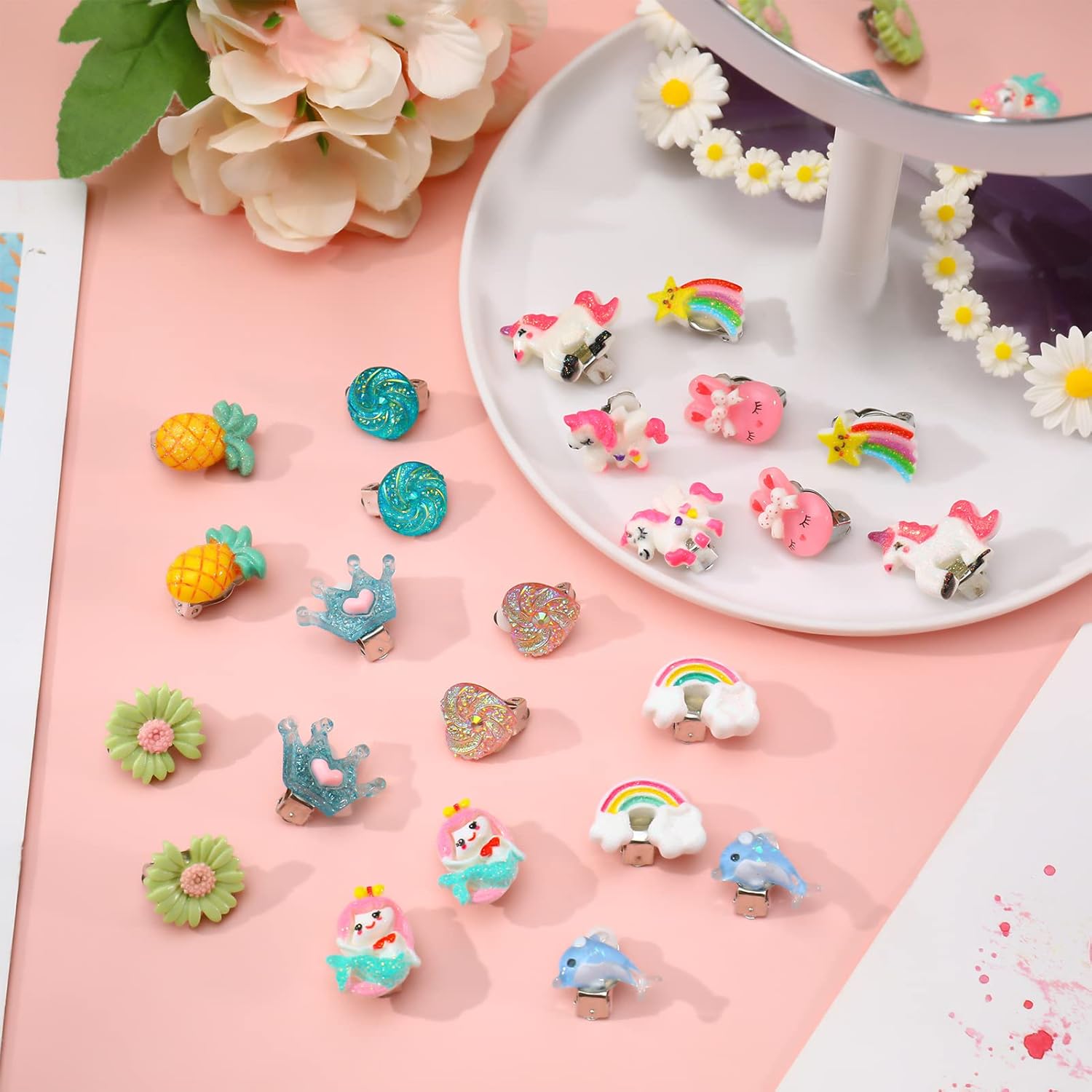 12 Pairs Kids Clip On Earrings for Girls, No Pierced Design Rainbow Earrings for Kids, Princess Clip-on Stud Set, Dress Up Princess Jewelry Accessories