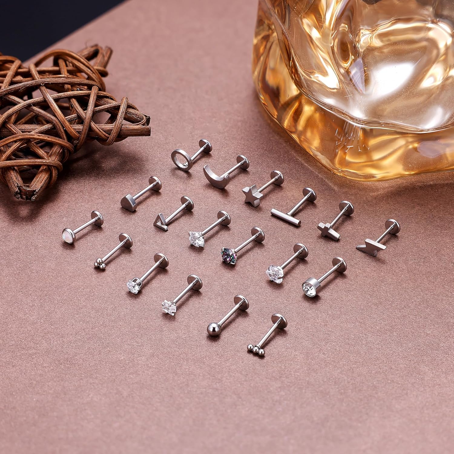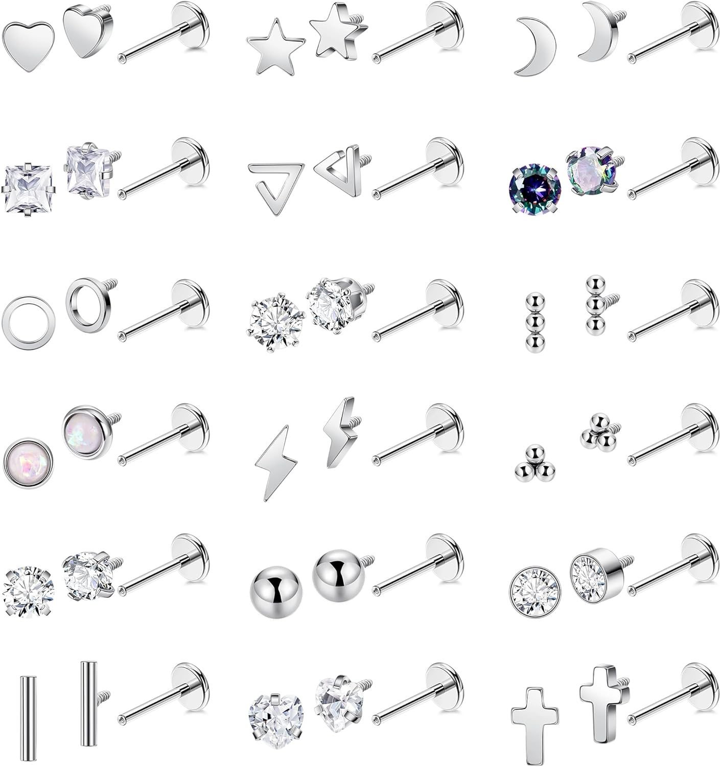 Home Jewelry & Fashion Accessories Earrings 18 Pairs Titanium Stainless Steel Stud Earrings Set for Women Men – Hypoallergenic Flat Back CZ Moon Star Heart Ball Helix Tragus Lobe Cartilage Earrings 6MM 8MM