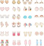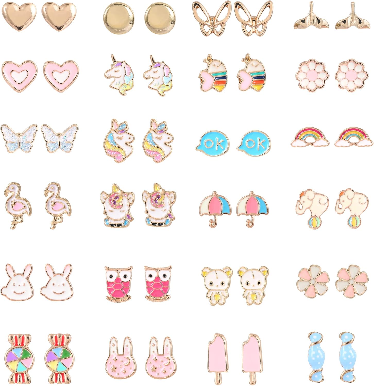 24 Pairs Hypoallergenic Stud Earrings Set for Girls Sensitive Ears With Stainless Steel Post Colorful Cute Earrings for Girls Women