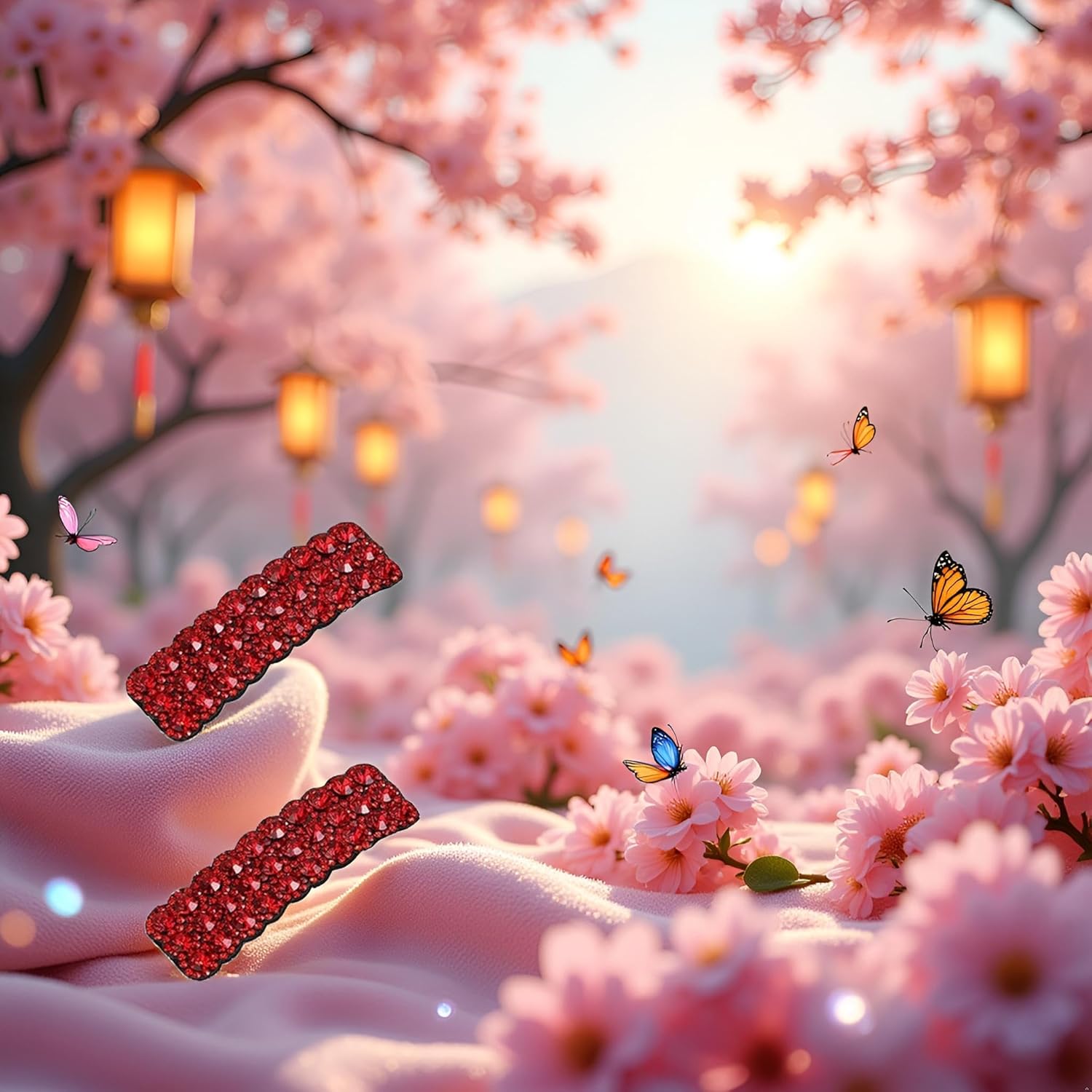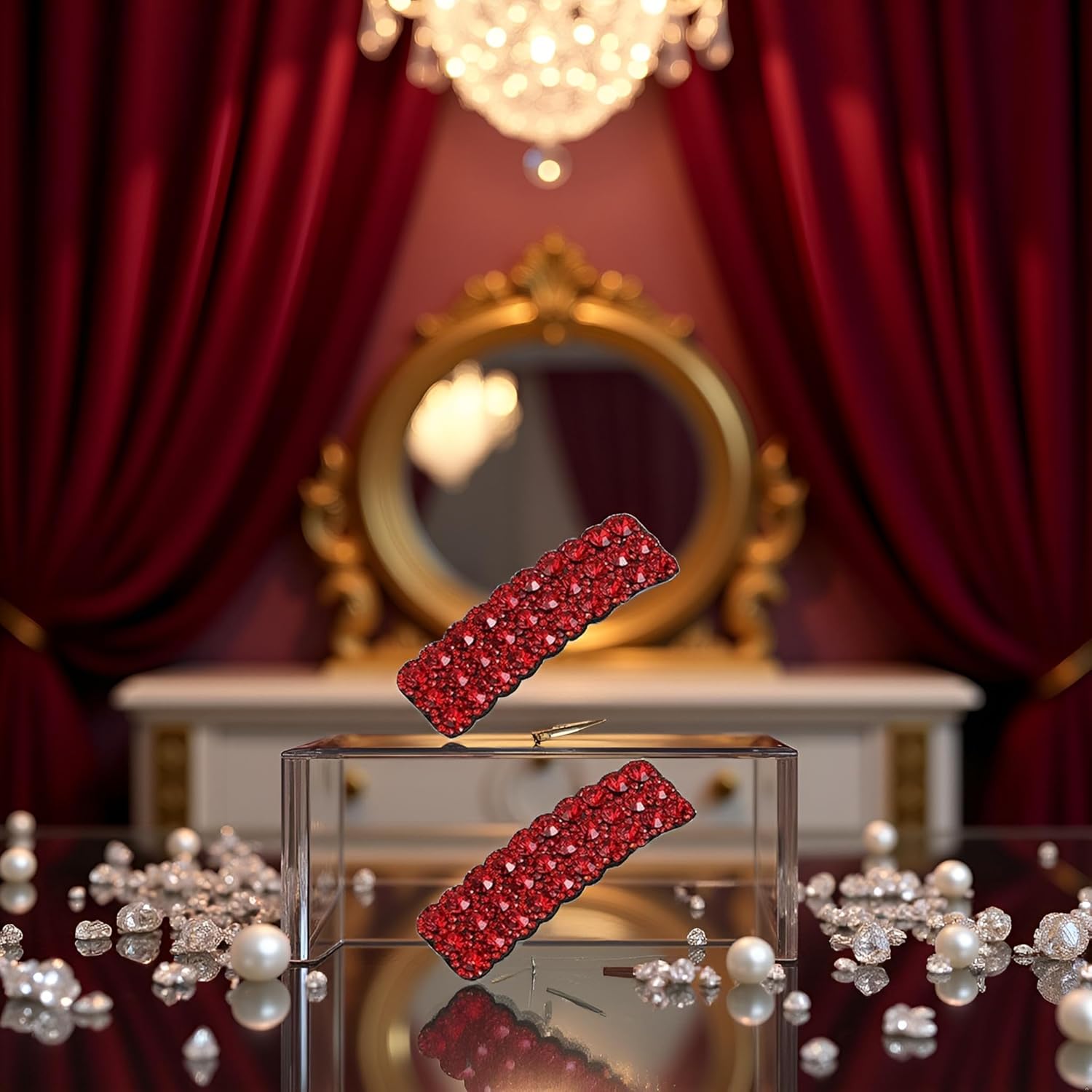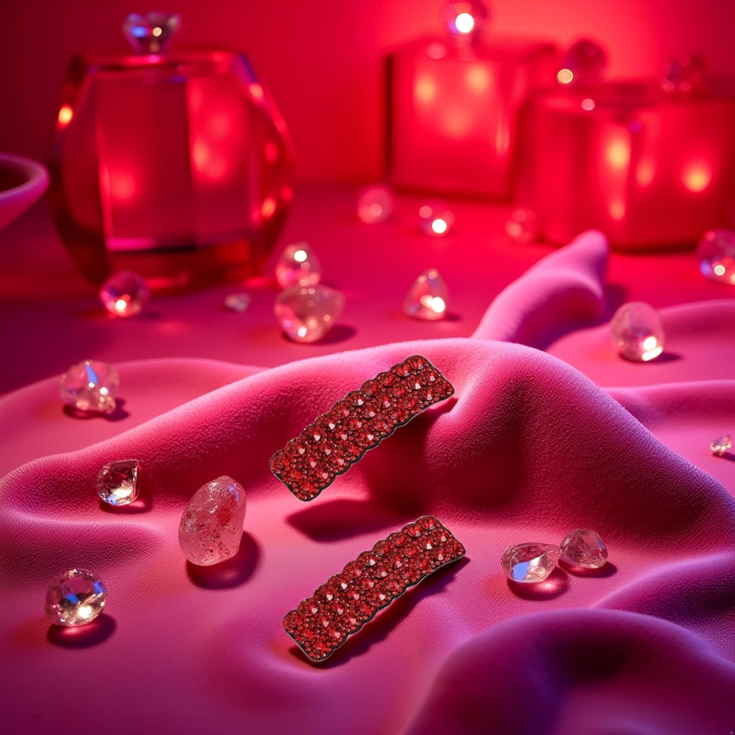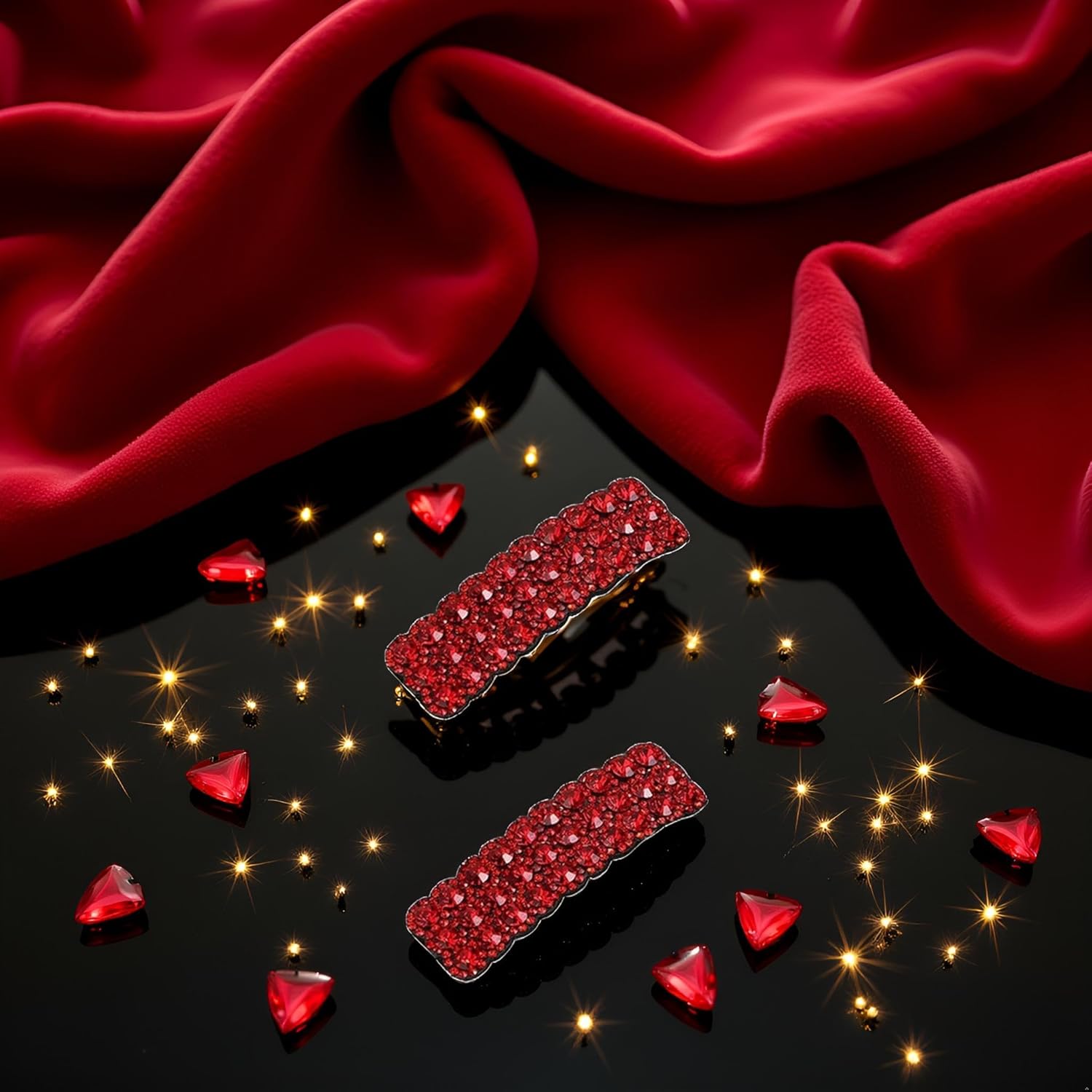 ELEGANT DESIGN: Set of 2 rectangular hair clips featuring stunning red rhinestones in a luxurious Korean-inspired style