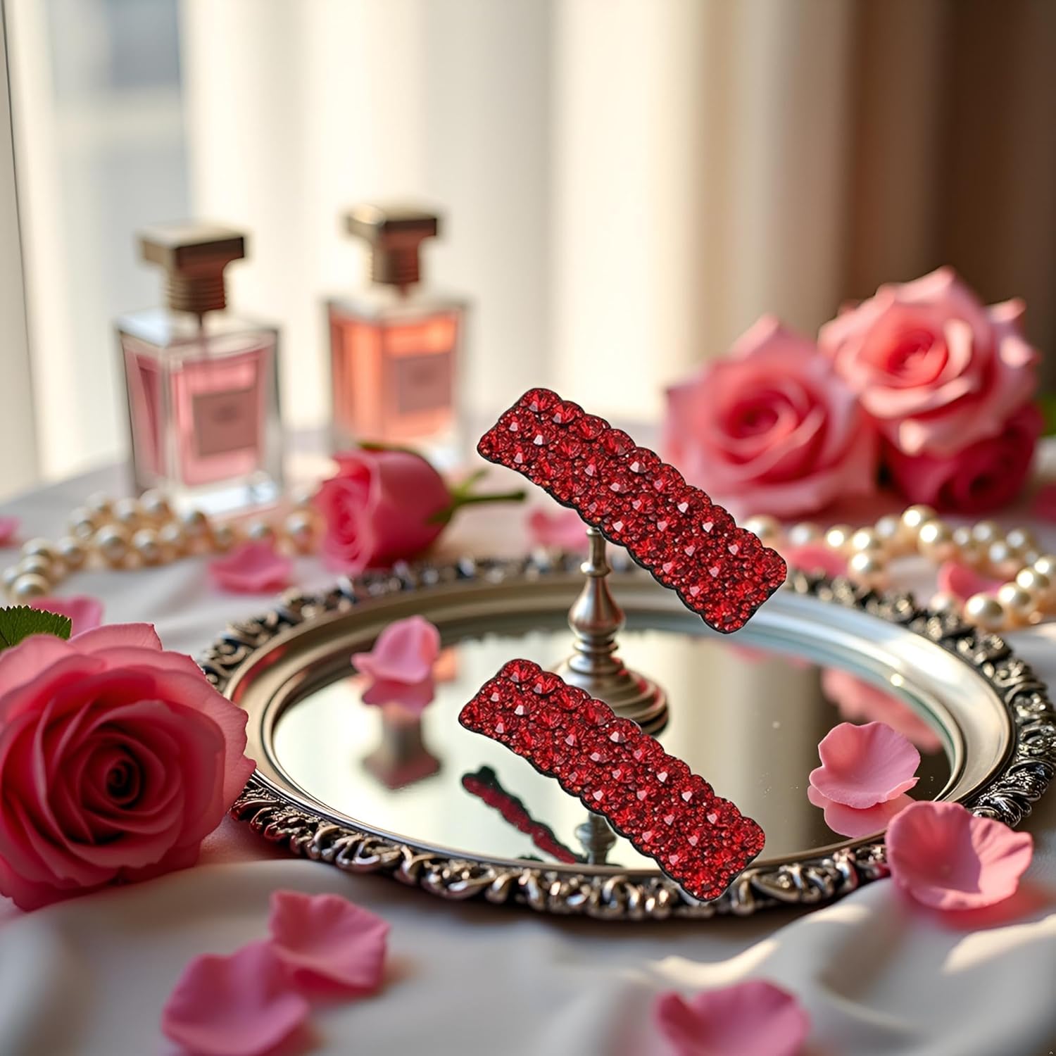 2Pcs Red Rhinestones Korean Style Hair Clips,Rectangular Hairpins Shiny Luxury Hairpins Wedding Rhinestone Hair Clips, Barrettes Hair Accessories for Women Girls,Hair Care