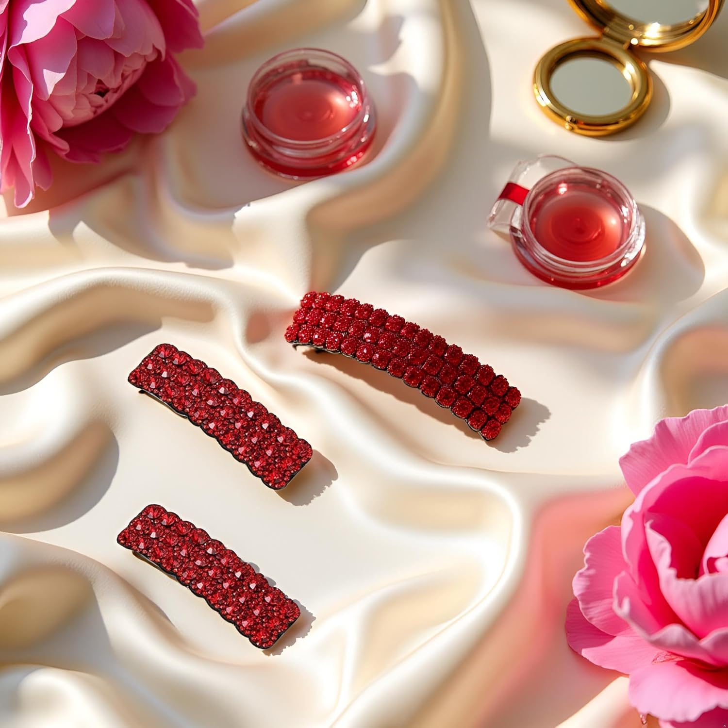 PREMIUM DESIGN: Set of 2 luxurious rectangular hair clips featuring sparkling red rhinestones in an elegant Korean-inspired style