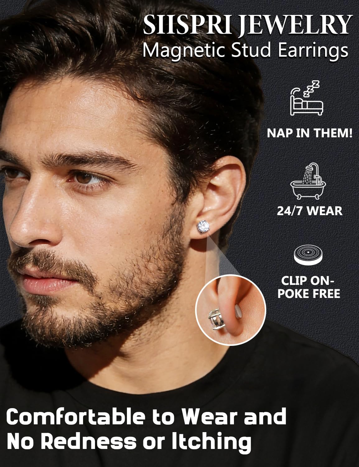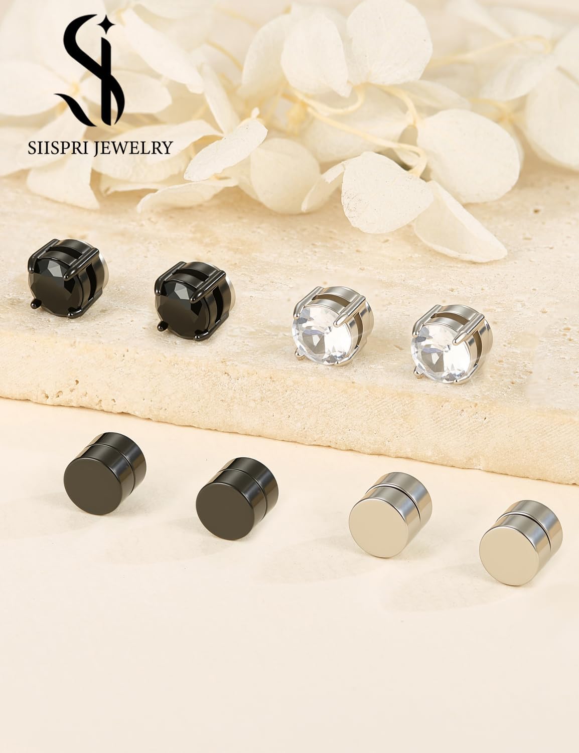 Be the first to review “4 Pairs Stainless Steel Magnetic Stud Earrings for Men Women Non Piercing Clip on CZ Earrings 6MM” Cancel reply
