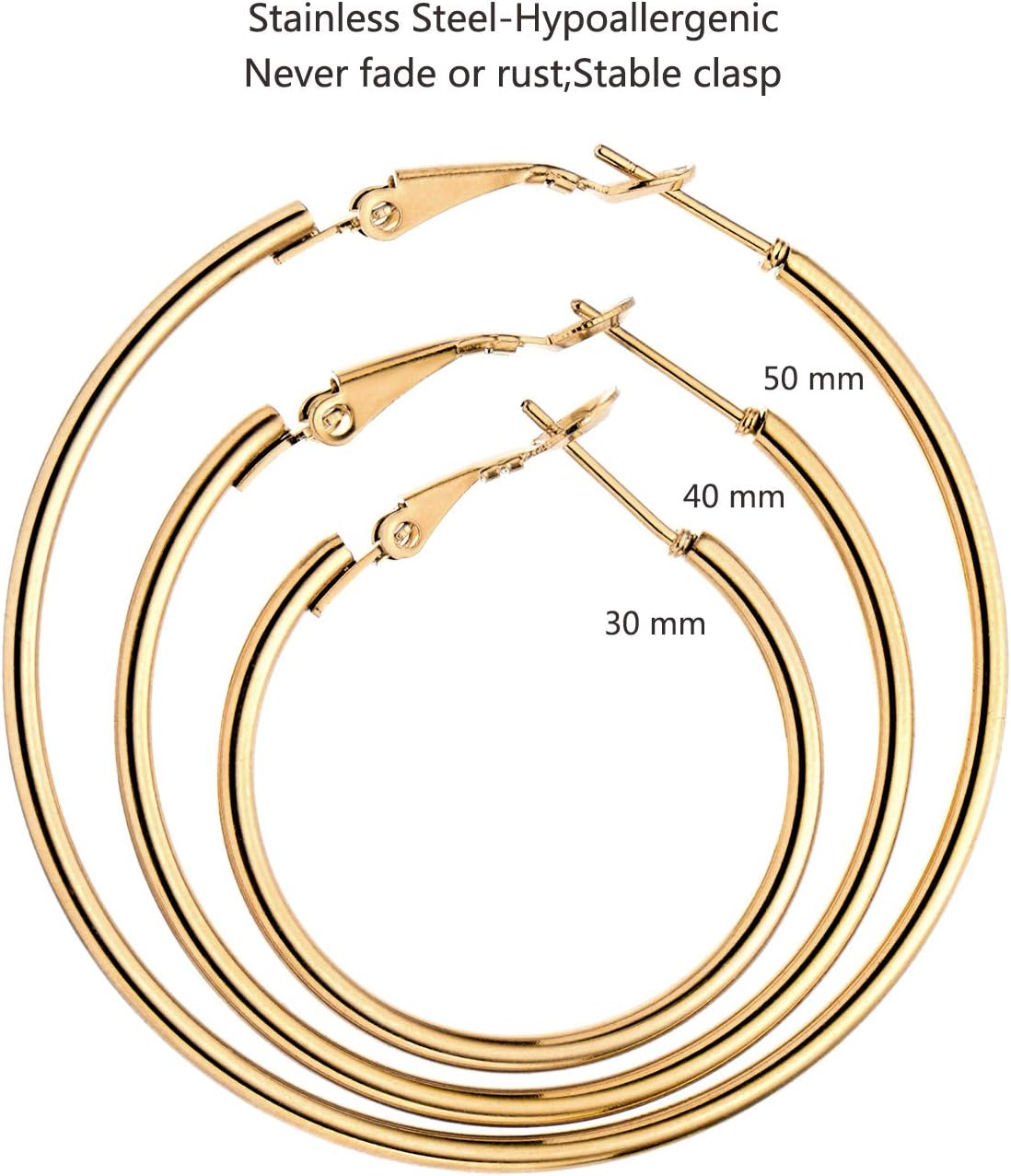 6 Pairs Stainless Steel gold silver Plated Hoop Earrings for Women, Hypoallergenic Hoops Women’s Earrings Loop Earrings Set