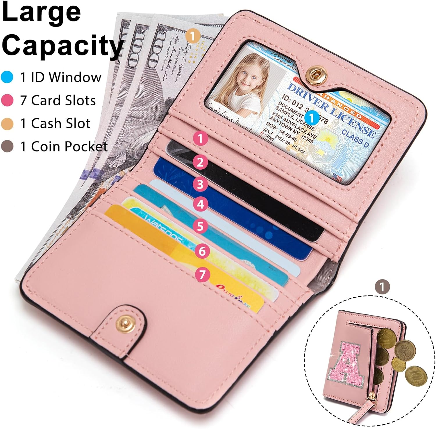 Credit Card Holder for Women Small woman’s wallets with 6 rfid block credit card slots,1 ID Windows, 1 Zipped Pocket for coin, keys, 1 Bill compartments, ladies mini wallet meet all your needs, make sure you never have to worry about leaving an important card behind while traveling or going about your daily activities.