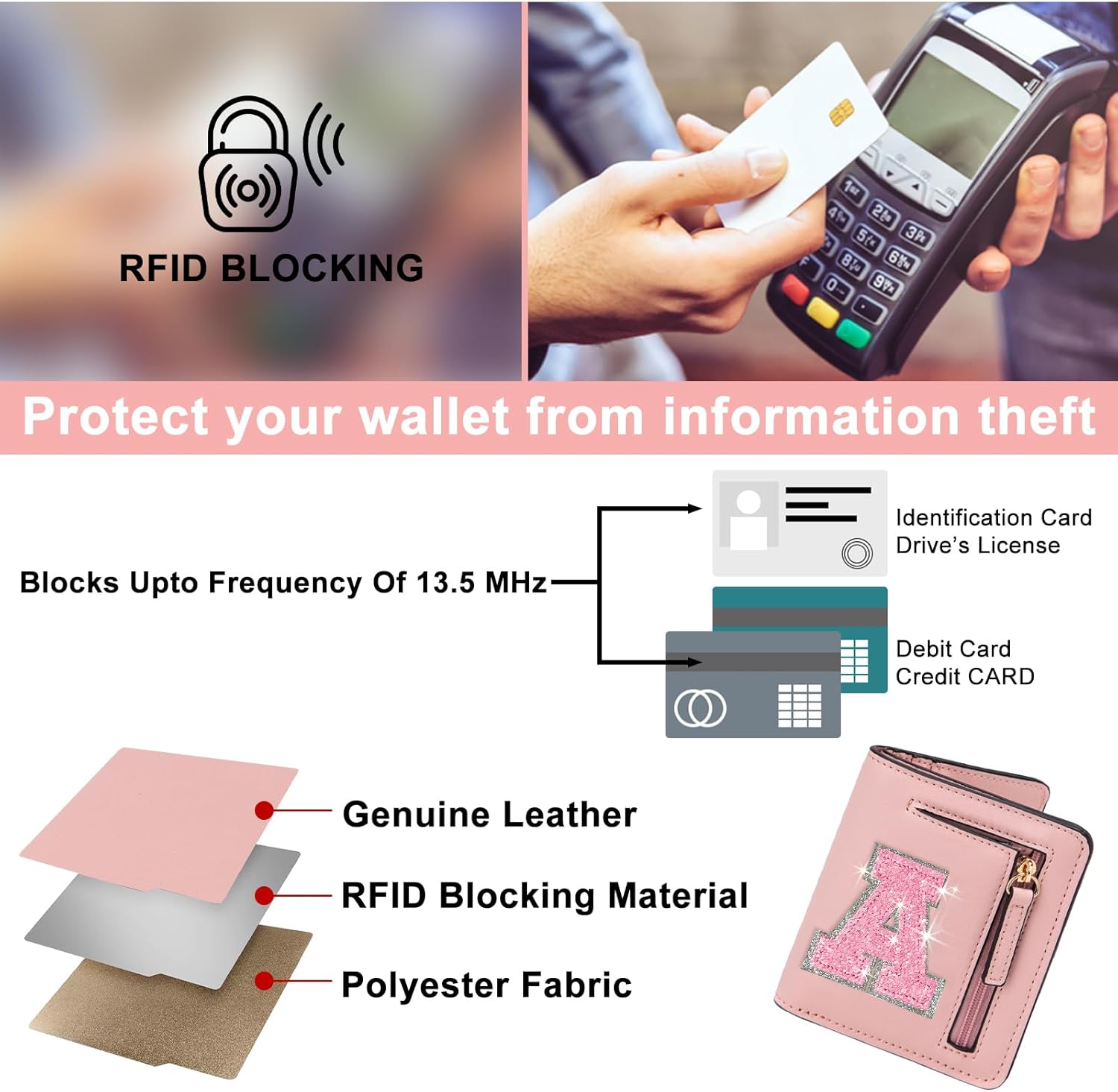 Rfid Women Wallet Still worried about having your credit card information and identity stolen or scanned? The Women’s rfid blocking wallet blocks all signals from credit/debit cards and even ID cards! Protecting the security of your card and personal information.