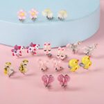 24 Pairs Hypoallergenic Stud Earrings for Girls Kids Cute Stainless Steel Earrings Fun Mushroom Butterfly Flower Rainbow Frog Earrings Set Jewelry for Little Girls Women
