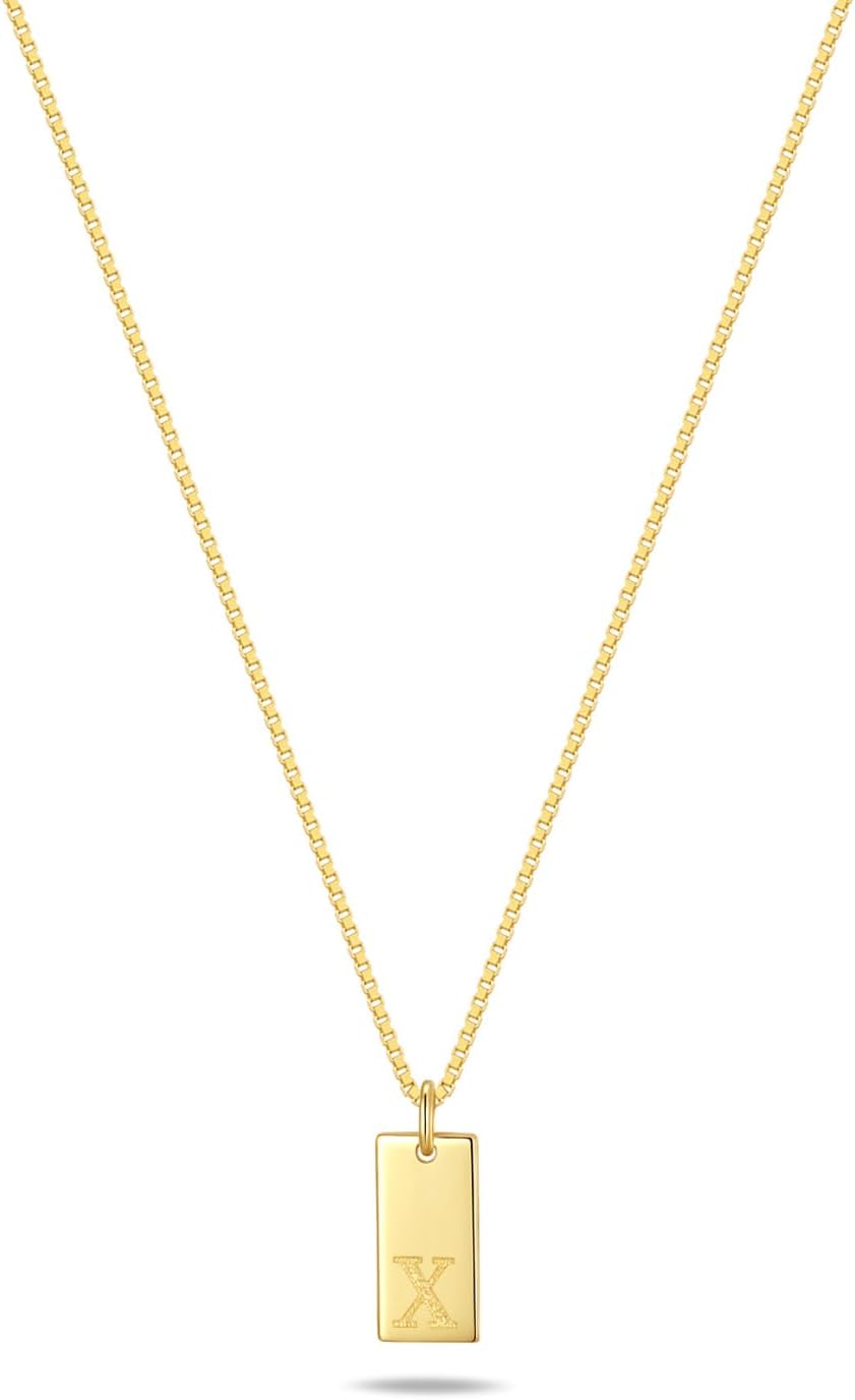 925 Streling Silver Necklace for Women 14K Gold Vermeil Letter Necklace Personalized A-Z Tag Pendant Initial Necklaces for Women Trendy Silver Gold Plated Jewelry