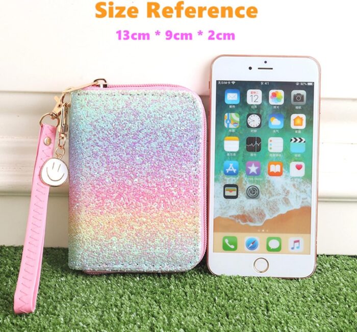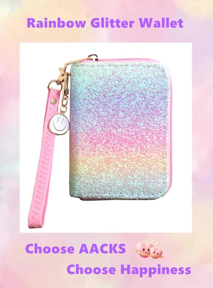 💖 Compact and Convenient: Don’t let its small size fool you! Despite its compact dimensions, the AACKS Rainbow Glitter Small Wallet is big on functionality. With multiple compartments and slots, it efficiently holds your cards, cash, and coins. Slip it into your pocket or purse for on-the-go convenience.
