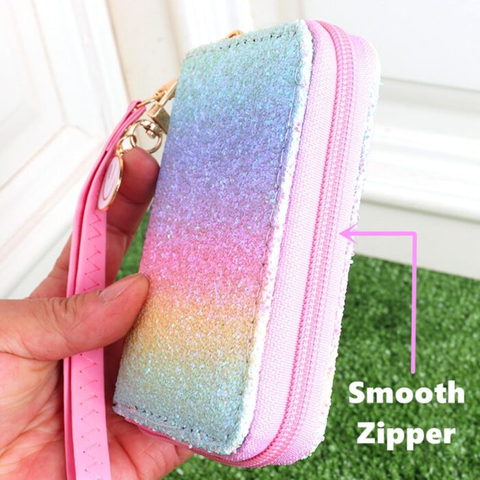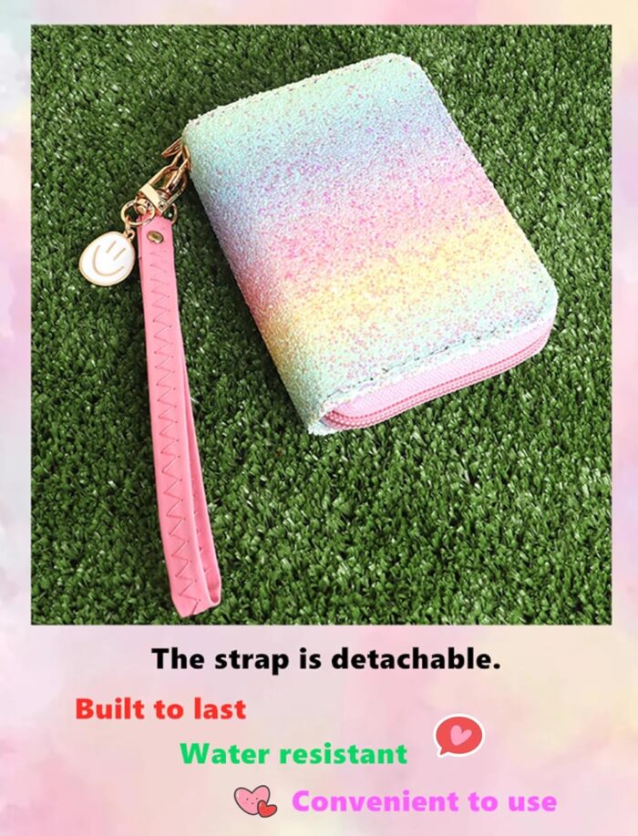 🌟 Sparkle and Shine: Embrace the magic of rainbows and glitter with this wallet’s eye-catching design. The rainbow hues and shimmering glitter add a playful yet elegant touch to your style. Let your personality shine as brightly as the rainbow with this captivating accessory.