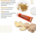 Reduces Redness and Soothes: Ginger is an effective treatment for acne, fighting active blemishes and treating skin until cleansing while Chamomile soothes