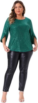Be the first to review “Agnes Orinda Plus Size Tops for Women 2025 Glitter 3/4 Slit Sleeve Crew Neck Shimmer Sparkle Sequin Party Blouse Tops” Cancel reply