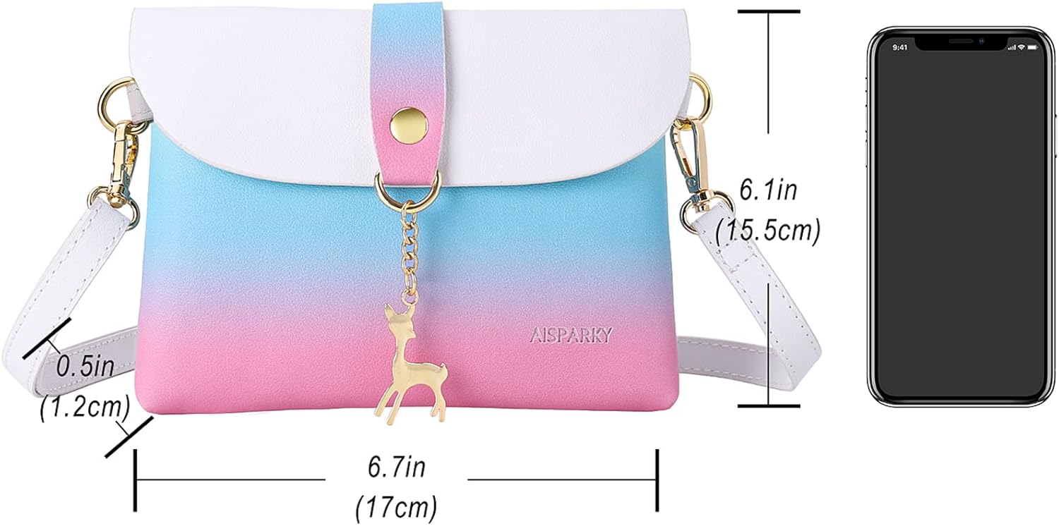 Category: Handbags Tags: AISPARKY, Bag, Children, Crossbody, Gifts, Girls, Gradient, Handbag, Leather, Purse, Small, Strap, Teenager, Toddlers