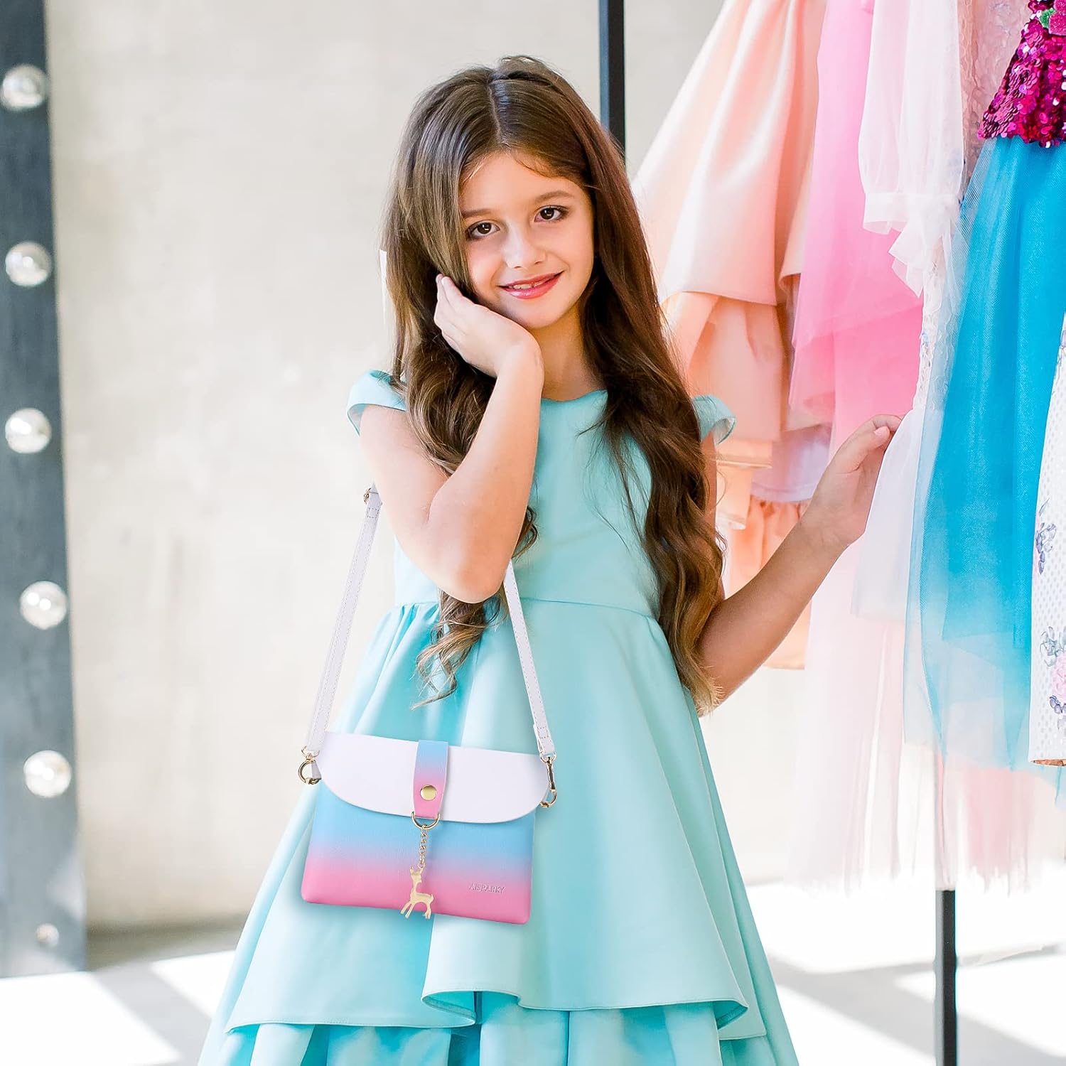 AISPARKY Handbag Teenager Girls Girls Purse Crossbody Leather Small Purse PU Bag Gifts for Children Girls Toddlers with Strap Strap, Gradient