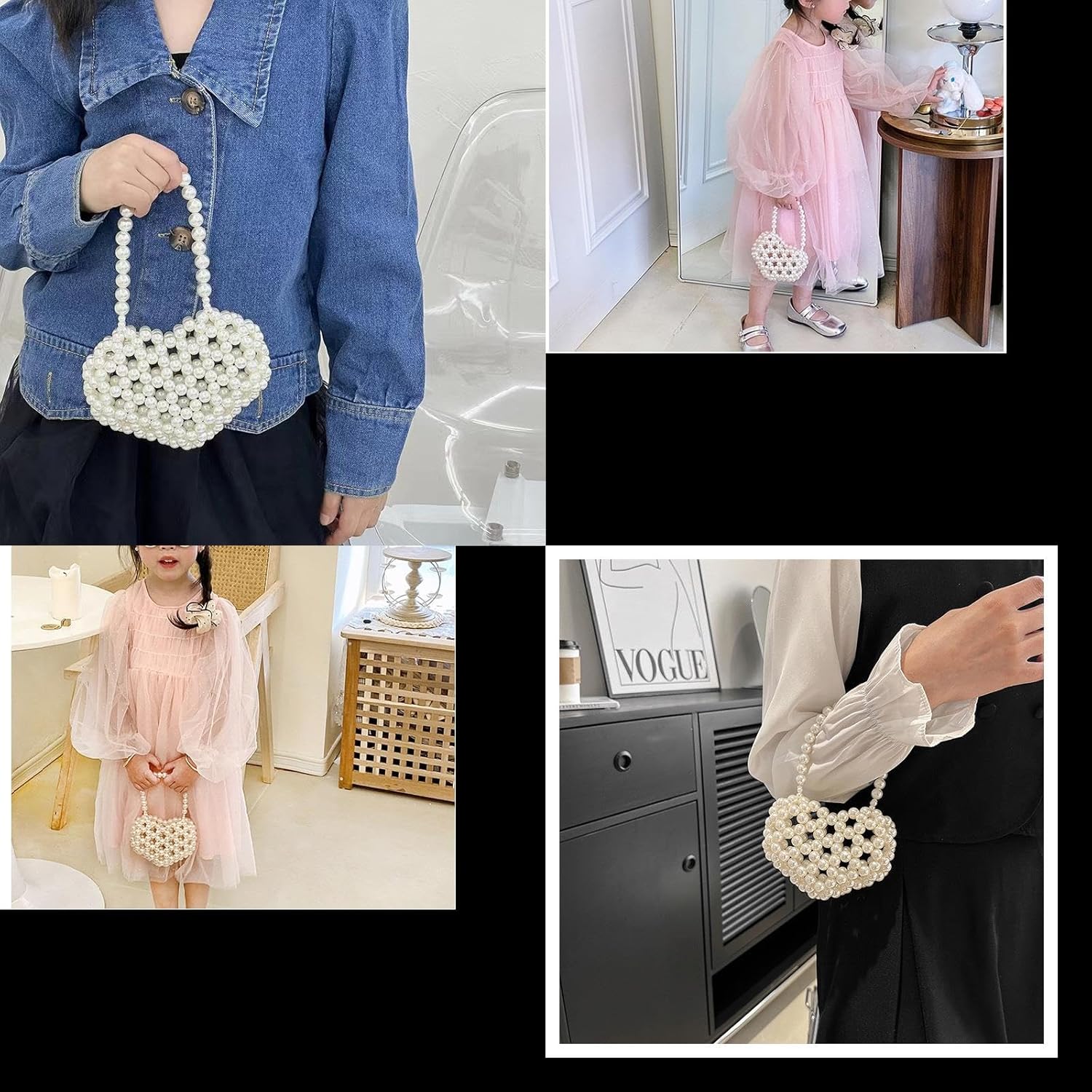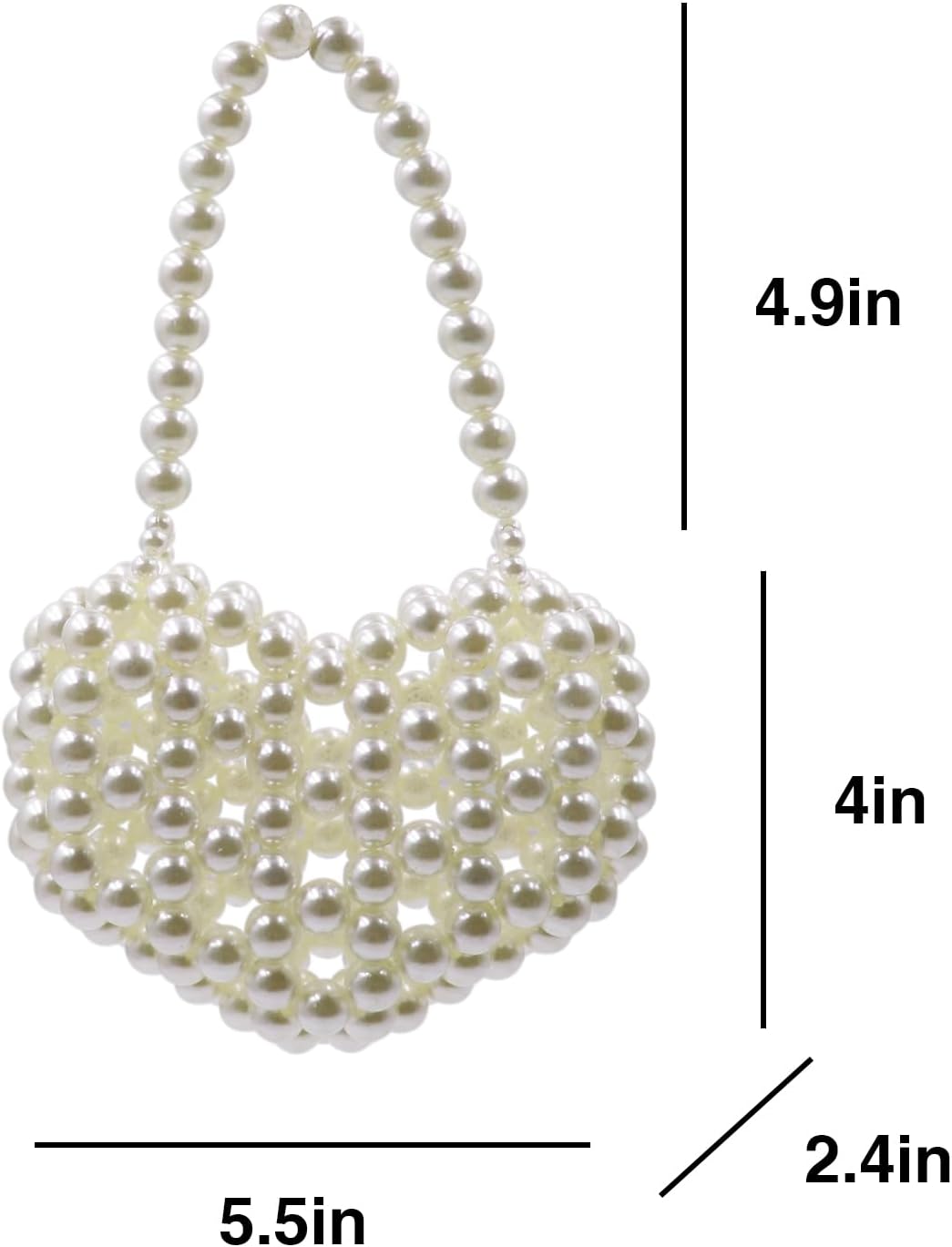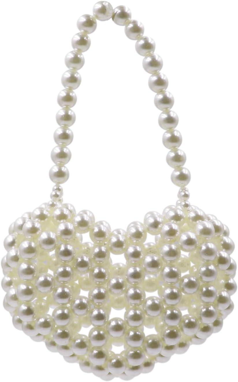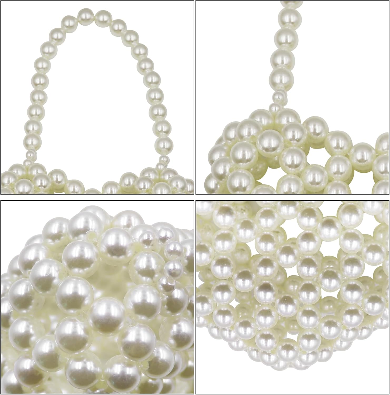 Amamcy Girls Mini White Pearl Purse Handbag Vintage Pearl Satchel Shoulder Bag Pearl Beaded Clutch Evening Bag for Women