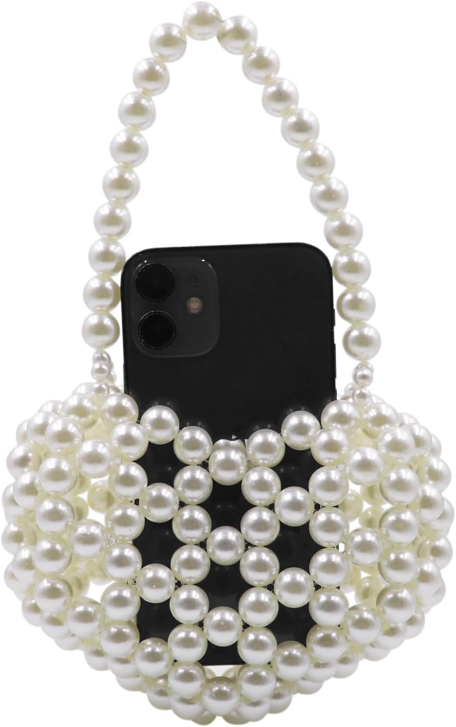Home Bags & Accessories Clutches Amamcy Girls Mini White Pearl Purse Handbag Vintage Pearl Satchel Shoulder Bag Pearl Beaded Clutch Evening Bag for Women