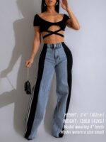 Be the first to review “Angsuttc Womens Jeans with Patchwork Stripes High Waisted Stretchy Denim Color Block Straight Wide Leg Trendy Jean” Cancel reply