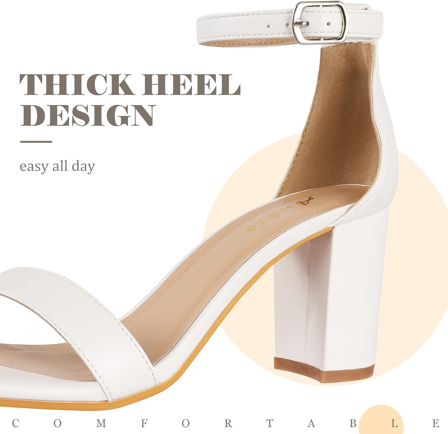 Ankis Nude Black Silver Gold Heels for Women Open Toe Ankle Strap Chunky Heel Pump Sandals Party Wedding Strappy Buckle Sandals Standard Size 2.75 Inches Tall Thick Heel Design