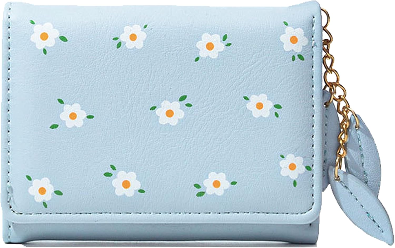 AOVINBID Small Wallets for Women, Slim Fashion cute Tri-folded wallet for girls PU Leather Same color Leaf Pendant Card Holder Organizer (PLUE)