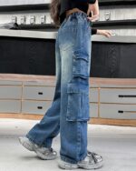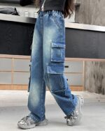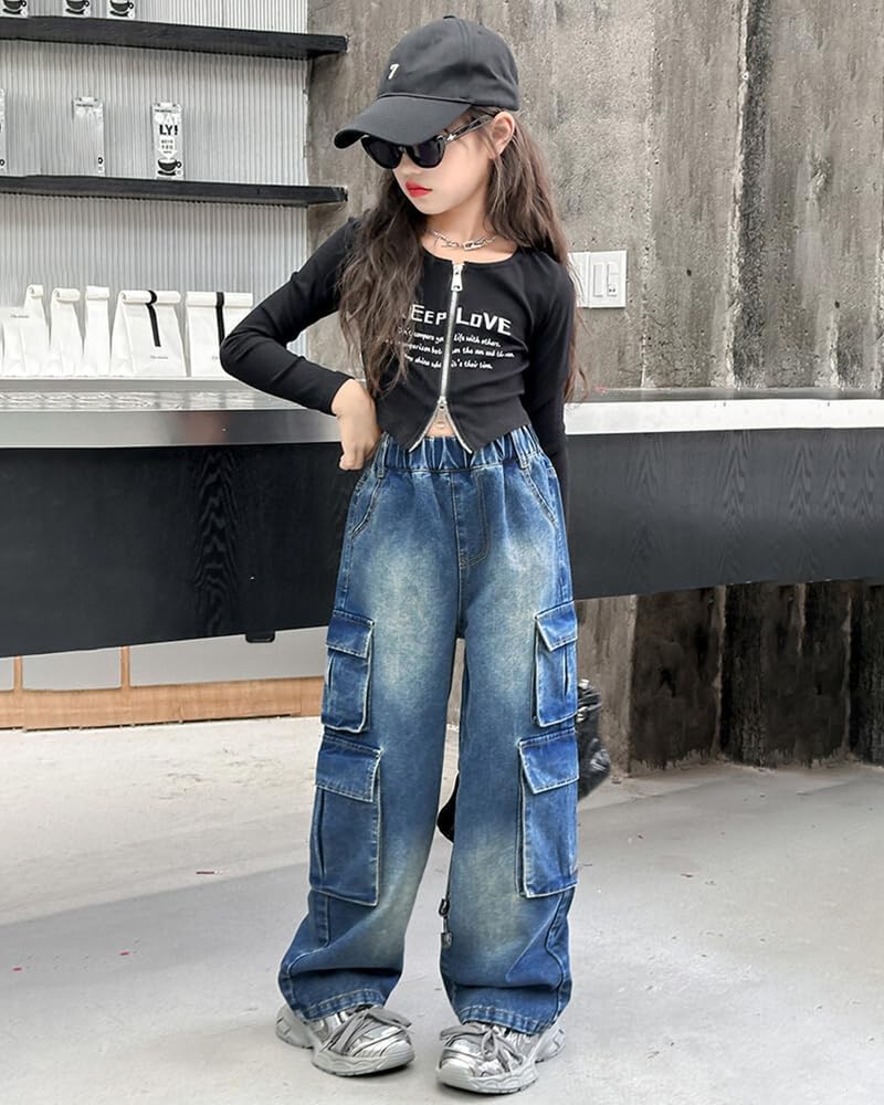 Category: Jeans & Pants Tags: 514Y, AOWKULAE, Baggy, Cargo, Denim, Elastic, Girls, High, Jeans, Kids, Leg, Pant, Pants, Pockets, Straight, Waistband, Wide