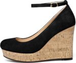 Home Shoes & Footwear Heels AUMOTED Women’s Platform Wedges Heels Pumps Closed Round Toe Buckle Ankle Strap Suede Heels Shoes for Ladies Casual Dress Summer 3.93 Inch High Heeled