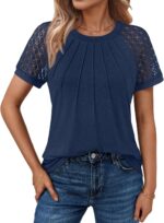 AUTOMET Womens Lace Tops Pleated Short Sleeve Shirts Summer Business Casual Dressy Blouses