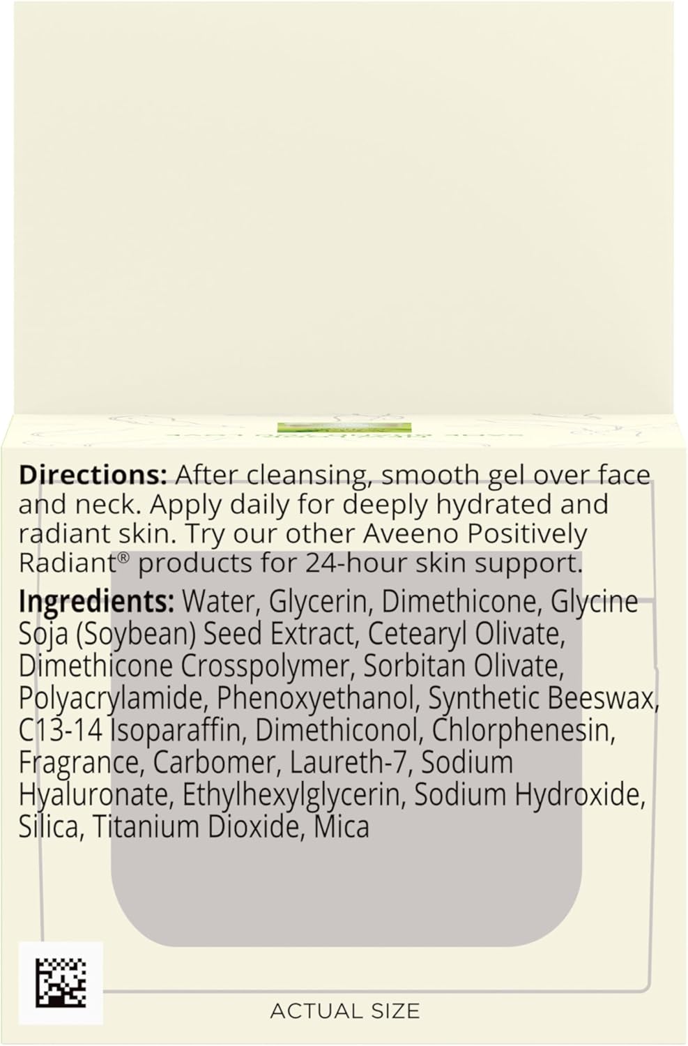 Aveeno Positively Radiant Daily Gel Facial Moisturizer with Hyaluronic Acid & Tone-Correcting Soy, Hydrating & Brightening Gel Face Cream Evens Skin Tone & Texture, Hypoallergenic, 1.7 oz