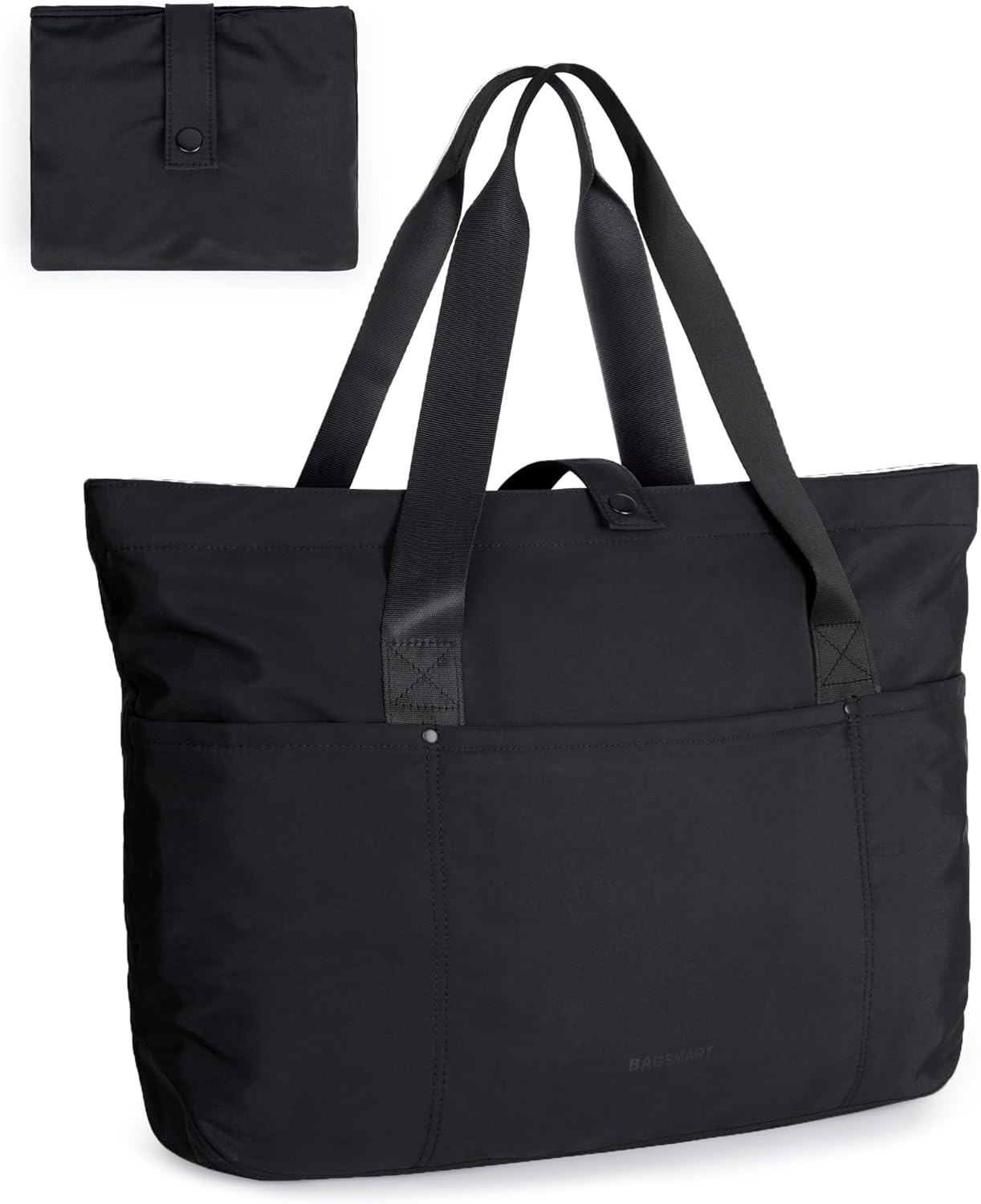 Tote Bag for Women, BAGSMART Foldable Tote Bag With Zipper Large Shoulder Bag Top Handle Handbag for Travel, Work, Shopping, Gym