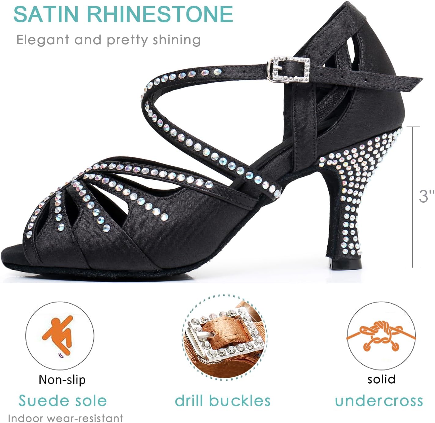 Be the first to review “Ballroom Dance Shoes For Women – Salsa Latin Dancing Shoes, Professional 3 Inch Ladies Satin Rhinestone Dance Heels, 3"Mid Heel Suede Sole” Cancel reply