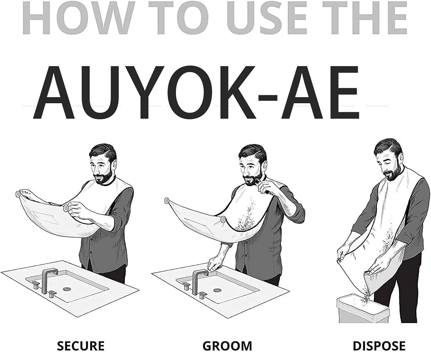 EASY TO USE, Just attach the neck straps and secure to mirror, then start with your normal grooming process. Once complete, unhook the beard apron from the suction cups, cleans by simply brushing the surface into the bin.
