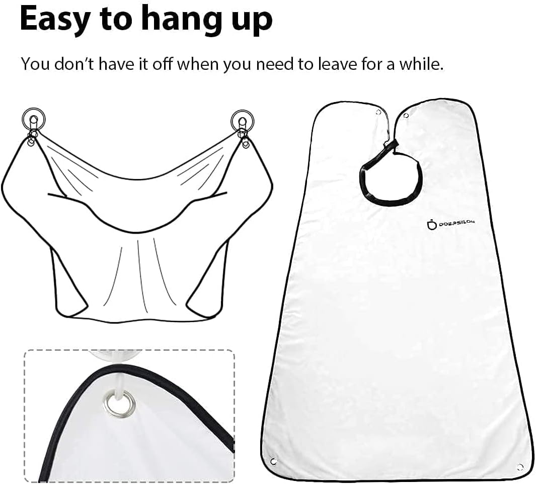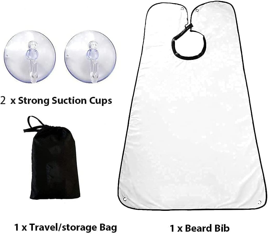 HIGH QUALITY WATERPROOF MATERIAL, Our beard apron is made of high quality fabric with a smooth surface, soft and skin friendly, Non-Stick Hair, Anti-static, beard can be get rid of the bib easily. Comes with 2 quality suction cups, would not leave marks on mirrors or tiles.