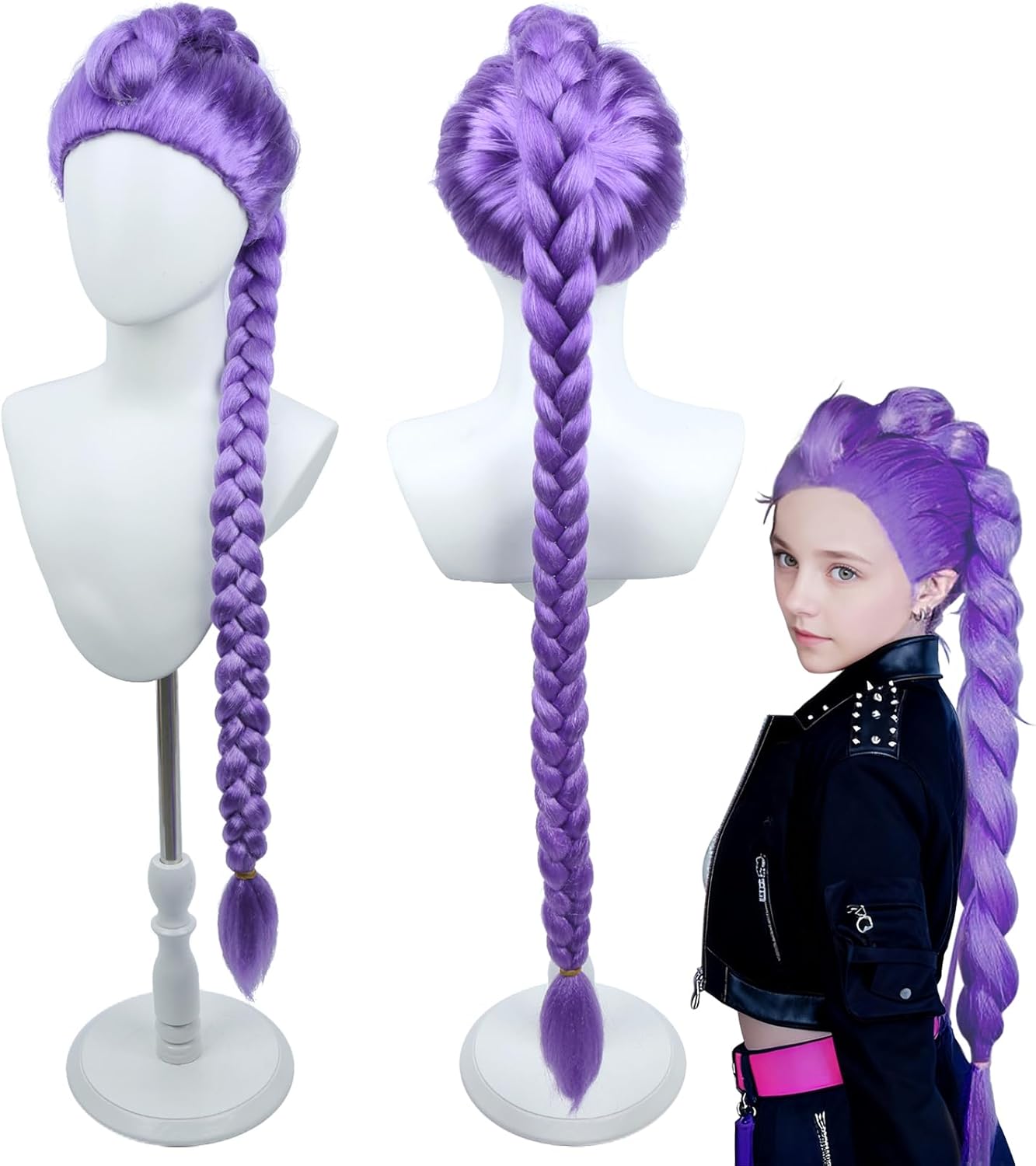 Home Beauty & Personal Care Hair Care BERON Girls Purple Long Wig with Braided Women Straight Long Braids Wigs for Cosplay Costume or Party