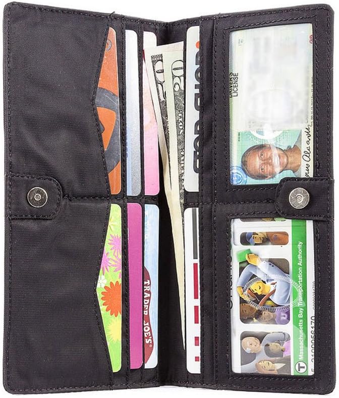 2 general billfold/checkbook areas, 8 extra-wide credit card pockets, 2 ID pockets