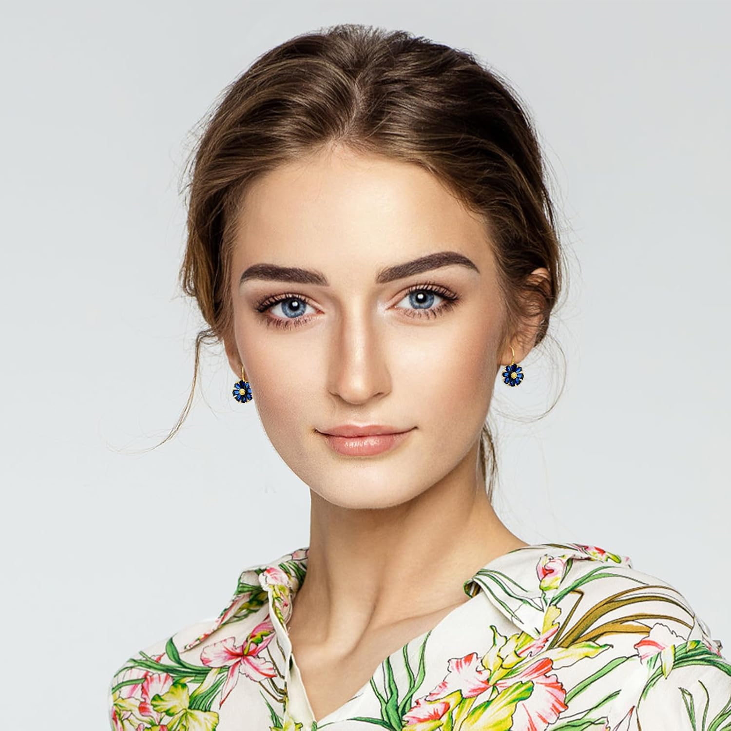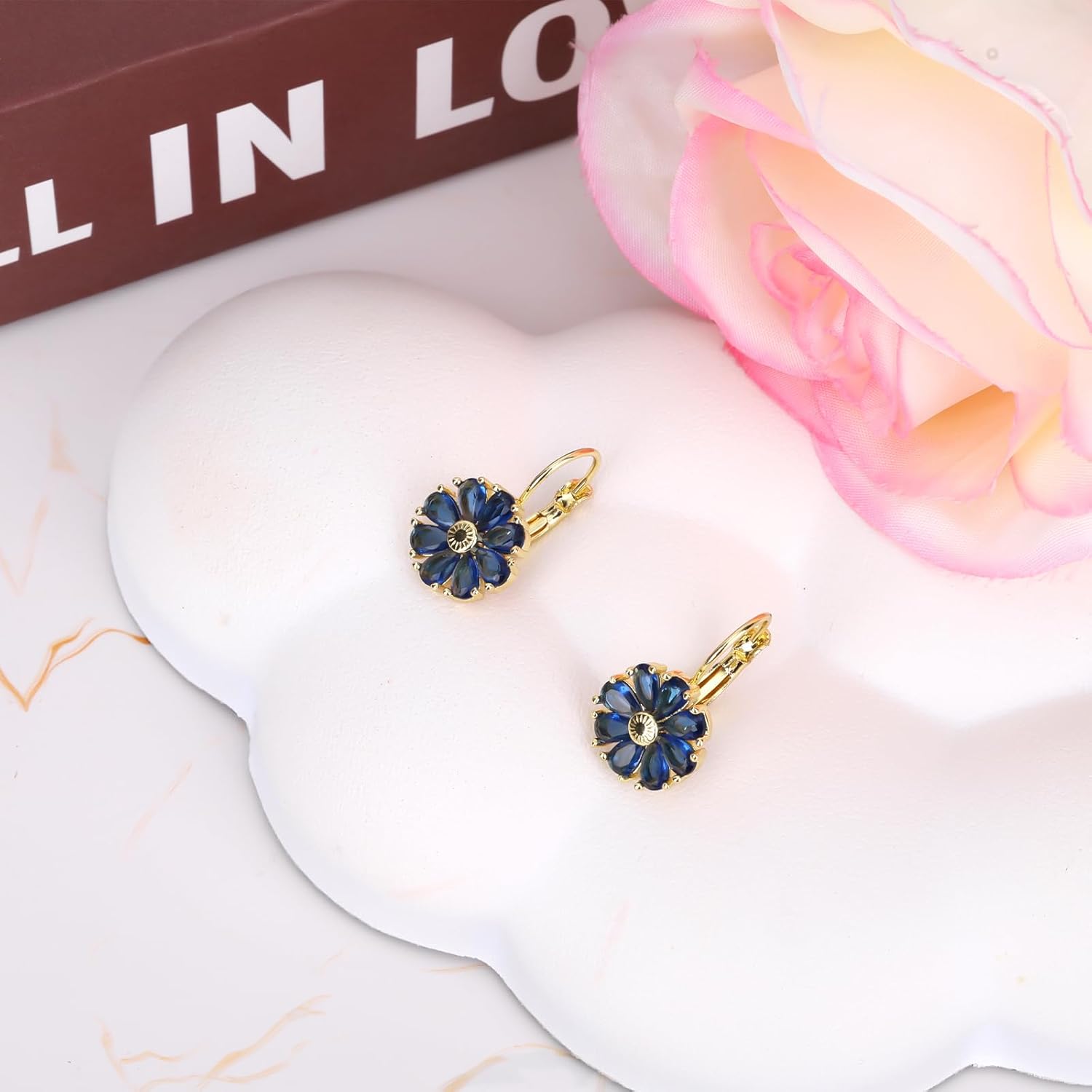 Birthstone Leverback Earrings Vintage Flower Statement Earrings Trendy Jewelry Gift Stud Earrings Flower Gemstones for Women Party Summer Holiday