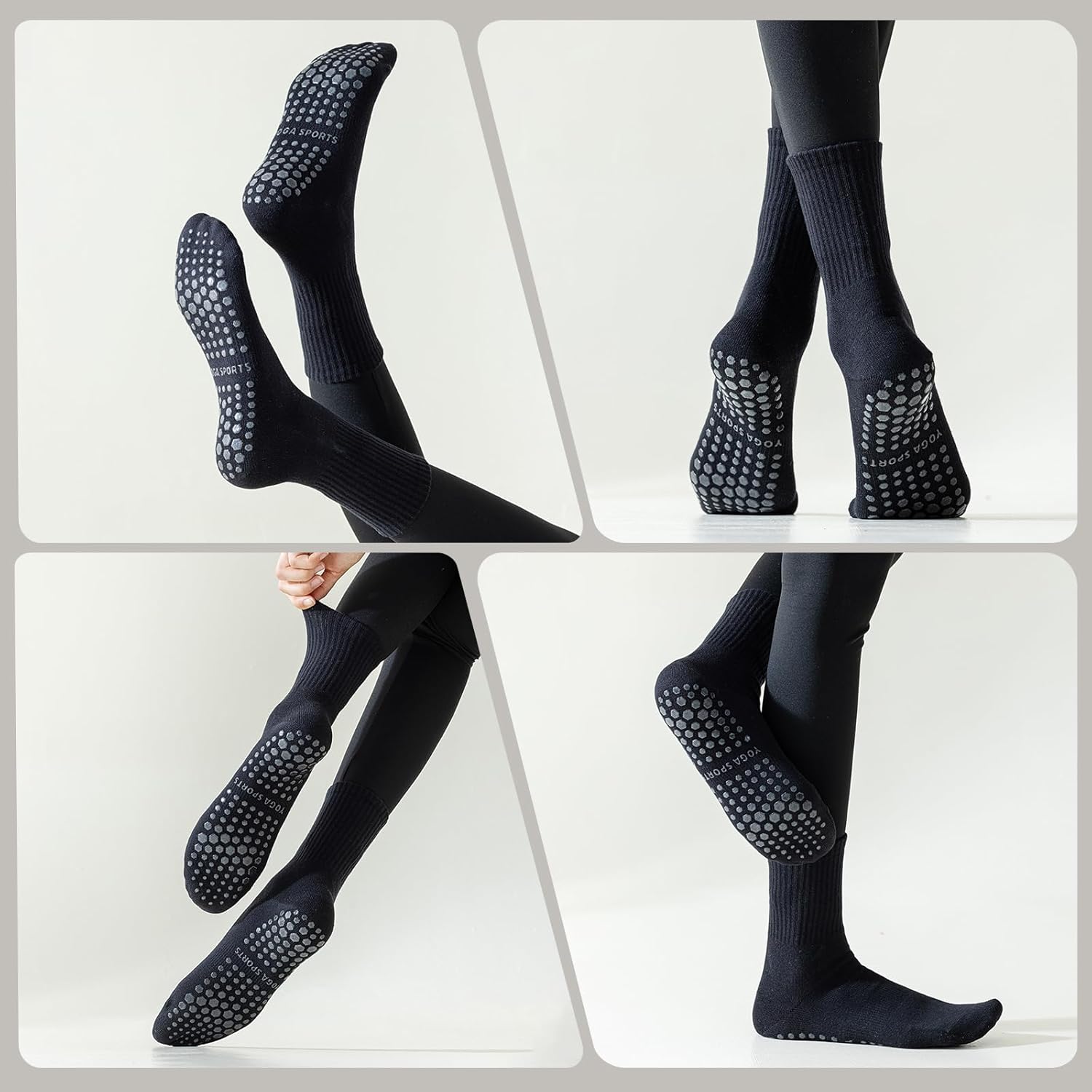 BISOUSOX Stopper socks for yoga: size for 36-40. Our Pilates socks are very comfortable and breathable. They are made from 80% cotton, 10% polyester and 10% spandex, breathable