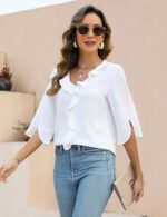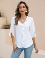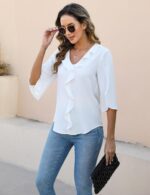 Be the first to review “Blooming Jelly Womens Dressy Casual Blouses 3/4 Sleeve V Neck Ruffle Tops Business Ladies Summer 2025 Trendy Work Shirt” Cancel reply