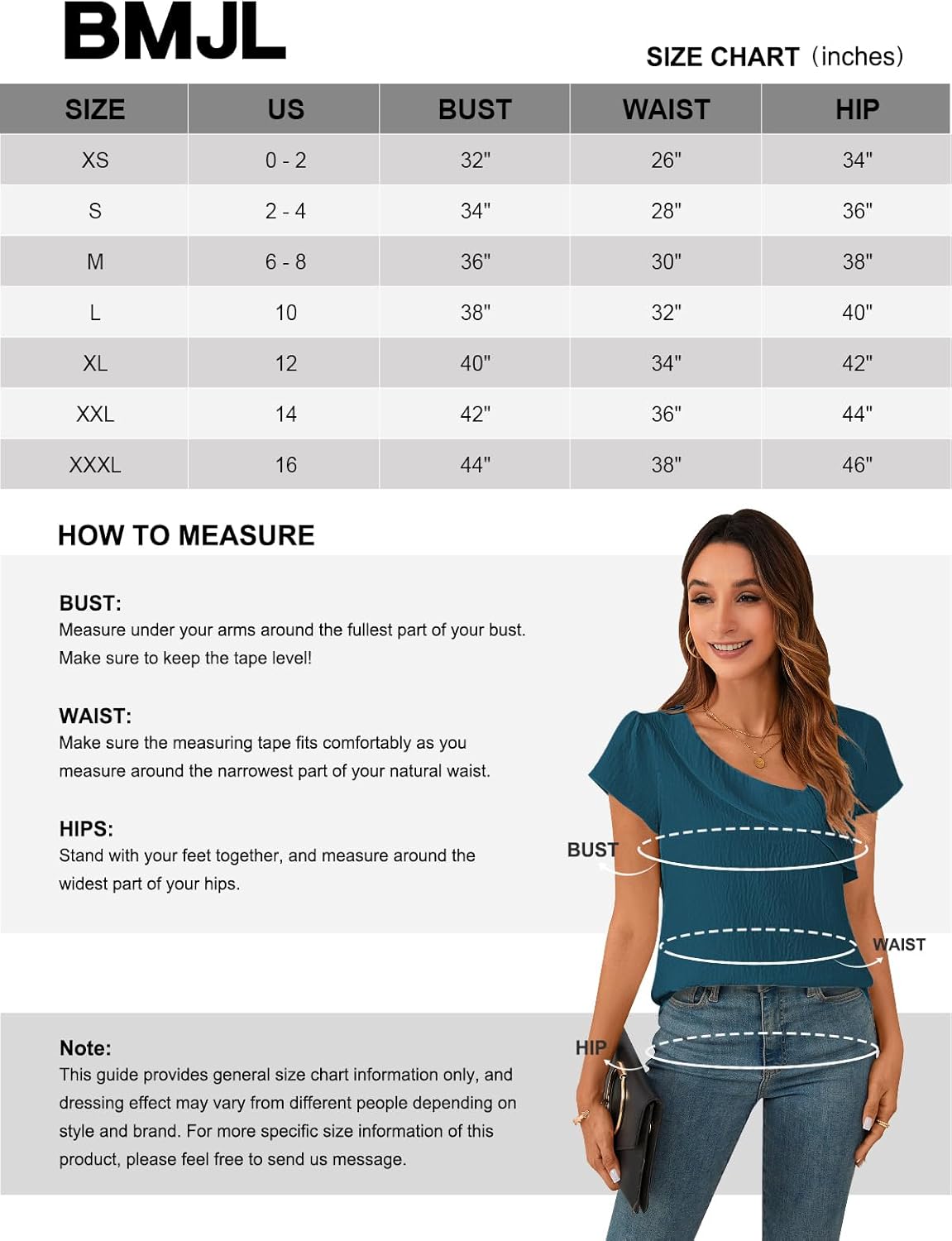 Be the first to review “BMJL Womens Dressy Casual Blouses Asymmetrical V Neck Business Work Tops Ruffle Sleeve Summer Shirts” Cancel reply