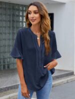 Blooming Jelly Womens Dressy Casual Shirts Short Sleeve V Neck Work Blouse Business Casual Summer Tops 2025
