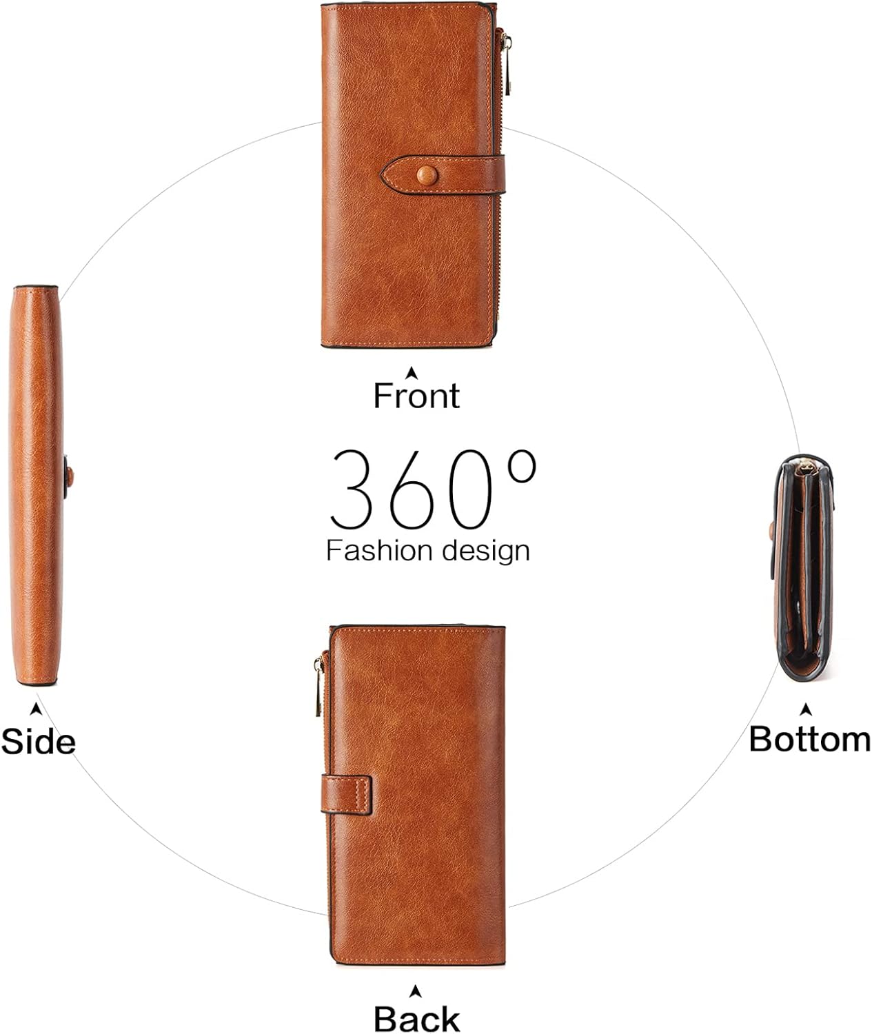 Home Bags & Accessories Wallets BOSTANTEN Women’s Large Wallet, A-Brown-oil wax, Large, Large Wallet
