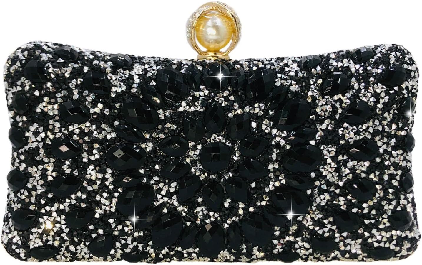 Home Bags & Accessories Clutches Boutique De FGG Mini Pearl Clasp Crystal Clutch Purses for Women, Evening Bags Wedding Handbag, Party Rhinestone Clutch Bag