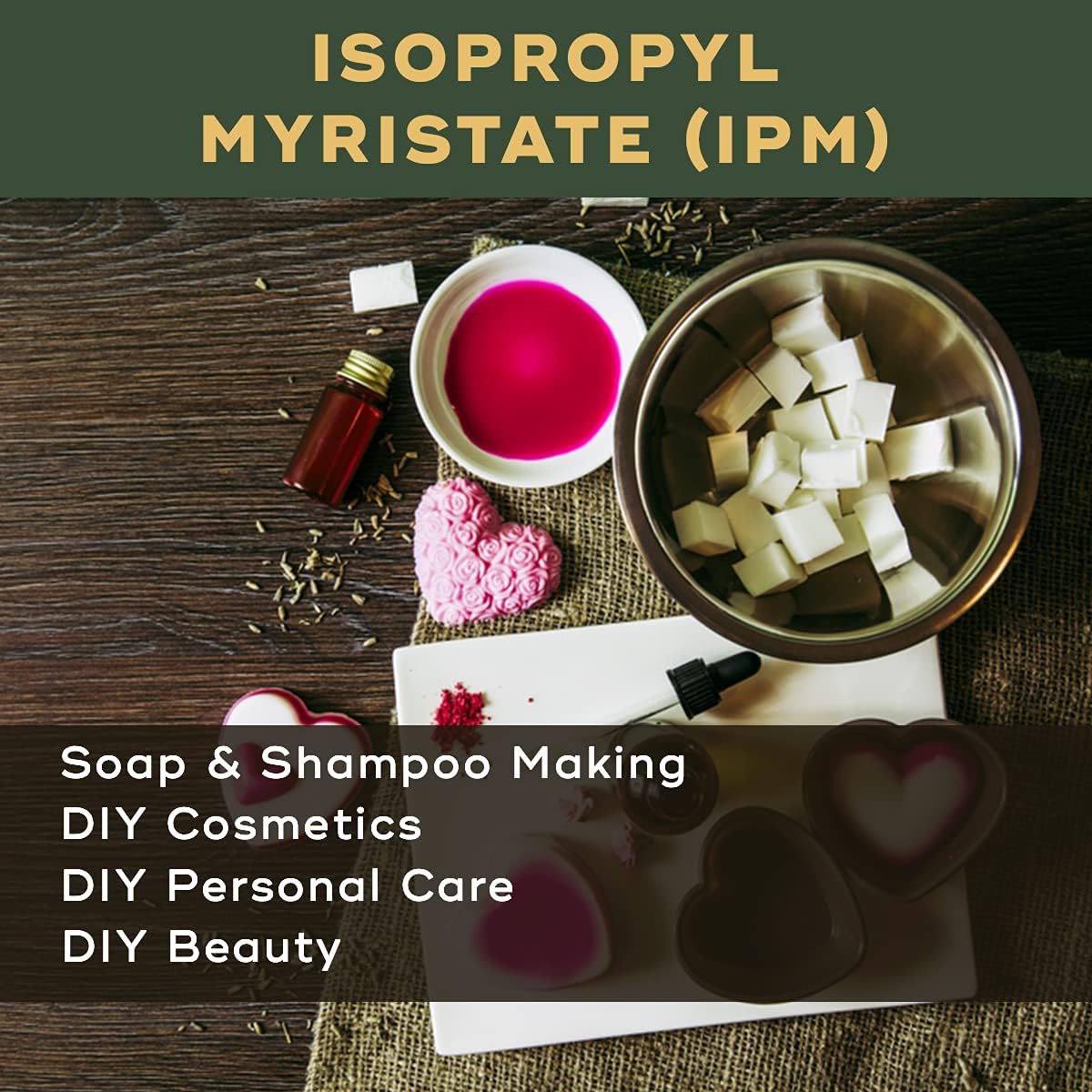 MULTI USE: Cosmetic Grade Isopropyl Myristate is used as a raw material for your cosmetic brand or DIY use to make products such as facial mask, face and body scrubs, lotions, creams, moisturizers, serums, body butters, hair and skin care and bath products, pressed powders, liquid foundation, mascara, deodorant soap, shampoo making and many more beauty and make up products