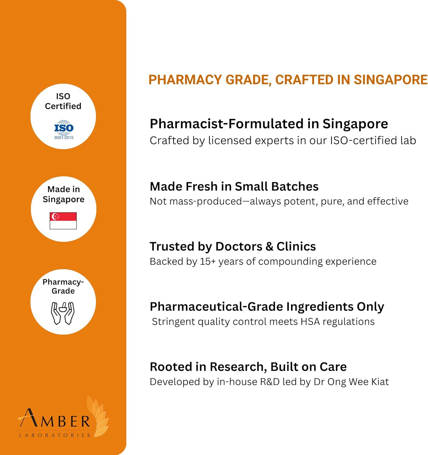 AMBER LABORATORIES QUALITY – Made in Singapore, pharmacist-formulated, and crafted in small batches with clean, vegan-friendly ingredients.