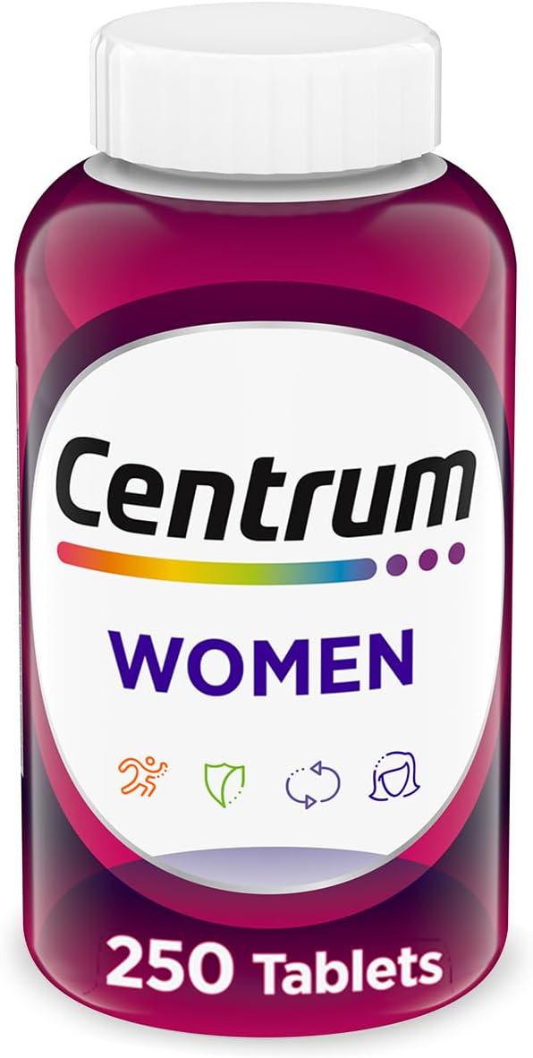 Centrum Multivitamin for Women, Multivitamin/Multimineral Supplement with Iron, Vitamin D3, B Vitamins and Antioxidant Vitamins C and E, Gluten Free, Non-GMO Ingredients – 250 Count