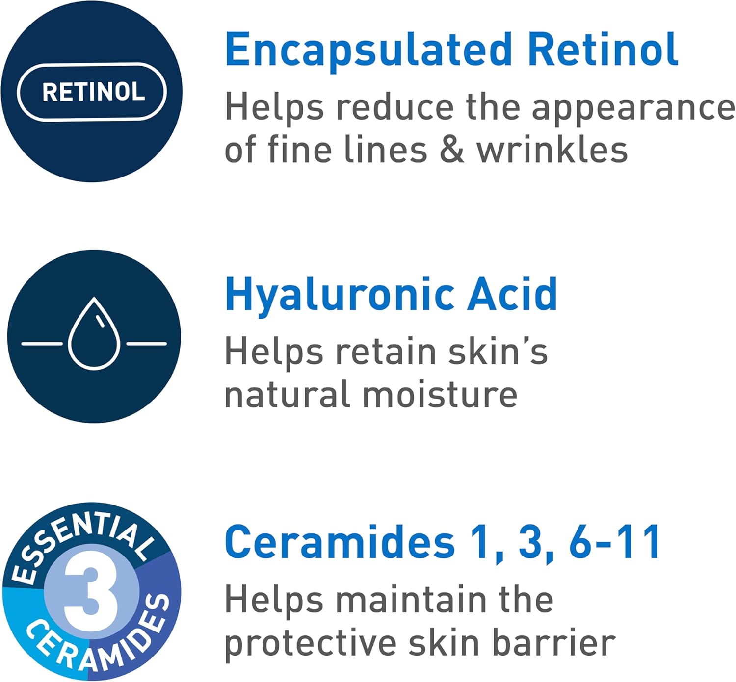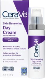 Developed with dermatologists, CeraVe Skin Renewing Day Cream with Broad Spectrum SPF 30 Sunscreen is designed to smooth fine lines and texture. It is formulated with encapsulated retinol and is clinically shown not to irritate the skin. Encapsulated retinol stabilizes and delivers retinol gradually. CeraVe Skin Renewing Day Cream also contains 3 essential ceramides (1, 3, 6-II) to help restore the protective skin barrier and provides broad spectrum coverage protection against UVA and UVB rays.
