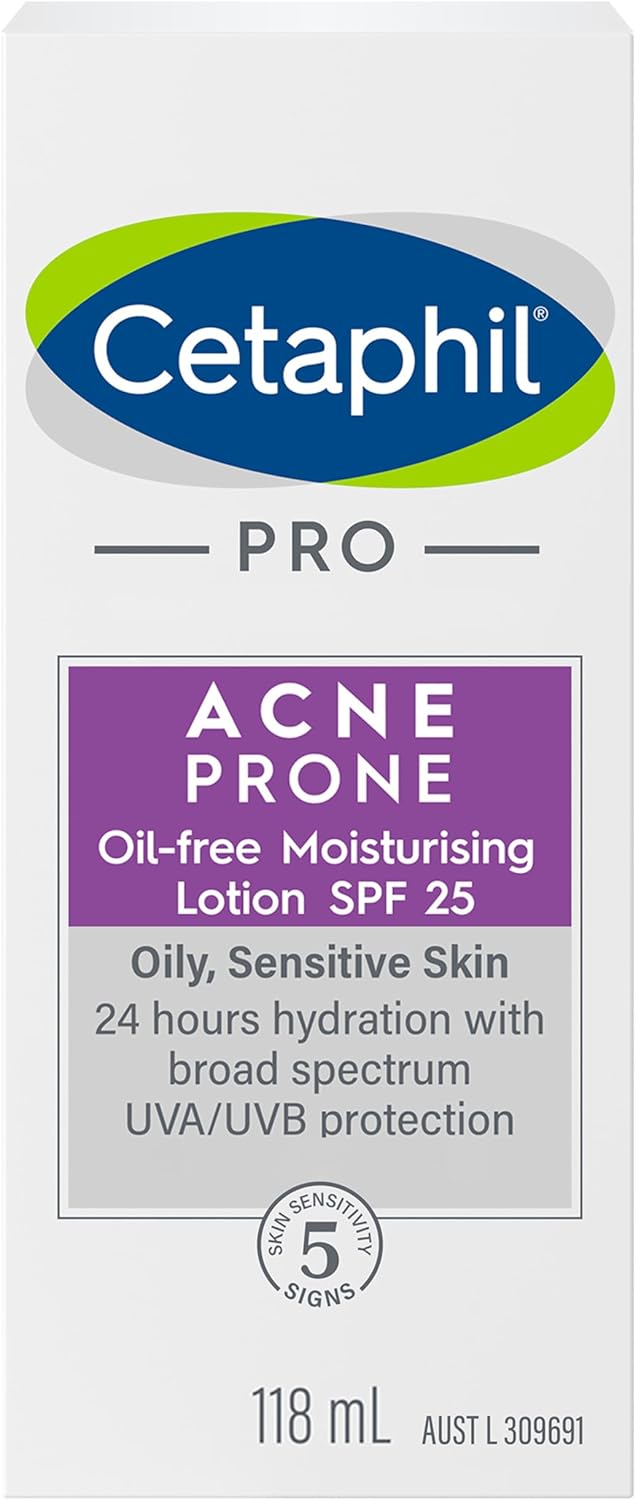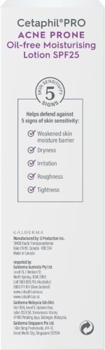 It includes broad spectrum UV protection to help fight harmful effects of UV rays. It also contains zinc, a matting agent that controls oil and shine. Cetaphil PRO Acne Prone Oil-Free Moisturising Lotion SPF25 is dermatologically tested suitable for acne-prone, oily blemished skin..Cetaphil is the No.1 Dermatological skincare brand in Singapore.