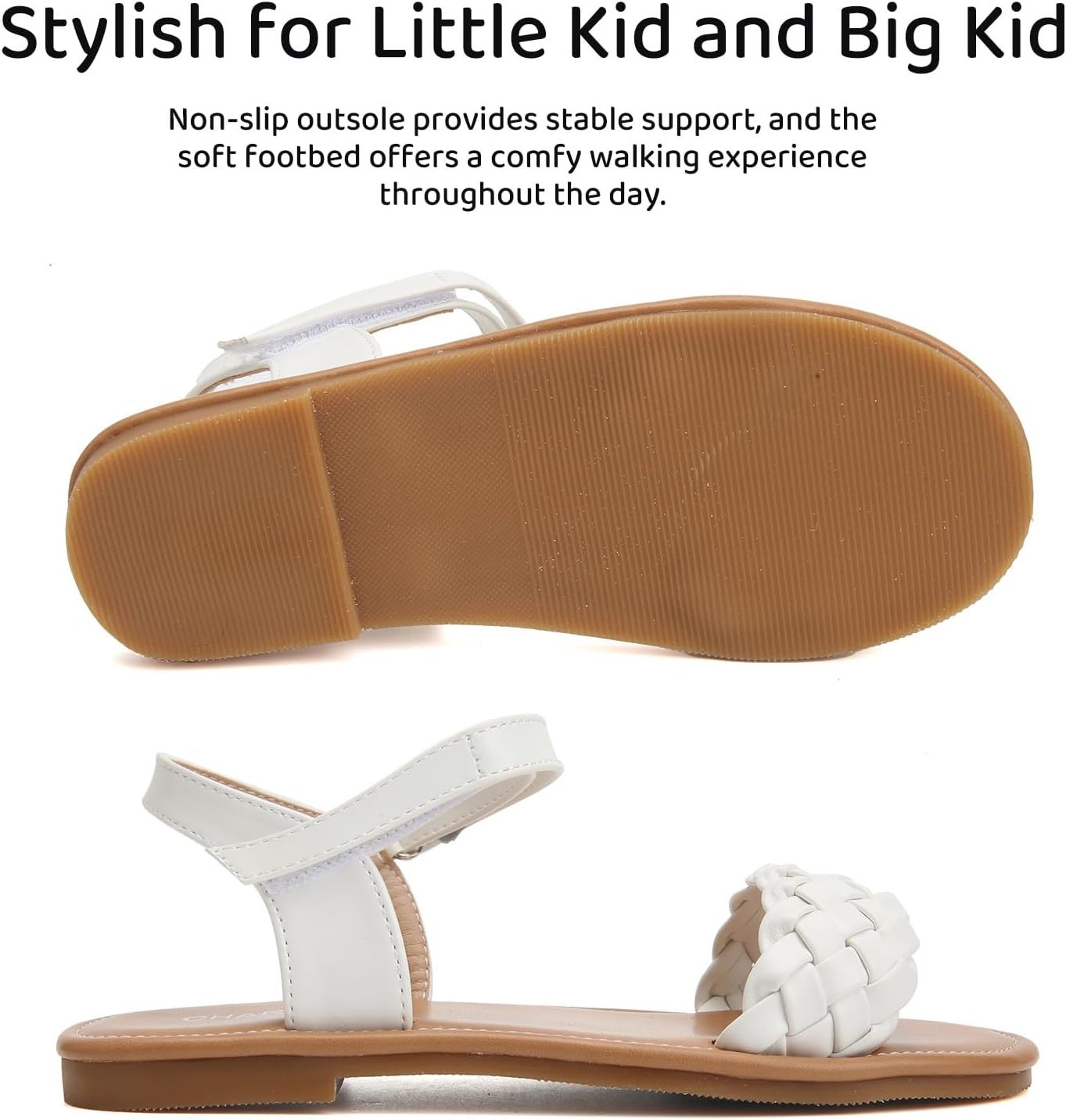 These sandals feature an elegant PU woven upper design, seamlessly blending simplicity and fashion. Not only does this design add a touch of elegance to the sandals, but it also makes them a perfect match for princess dresses, denim, or skirts. Whether for special occasions or everyday wear, these girls sandals will keep your little princess looking beautiful and confident, with a timeless sense of style.