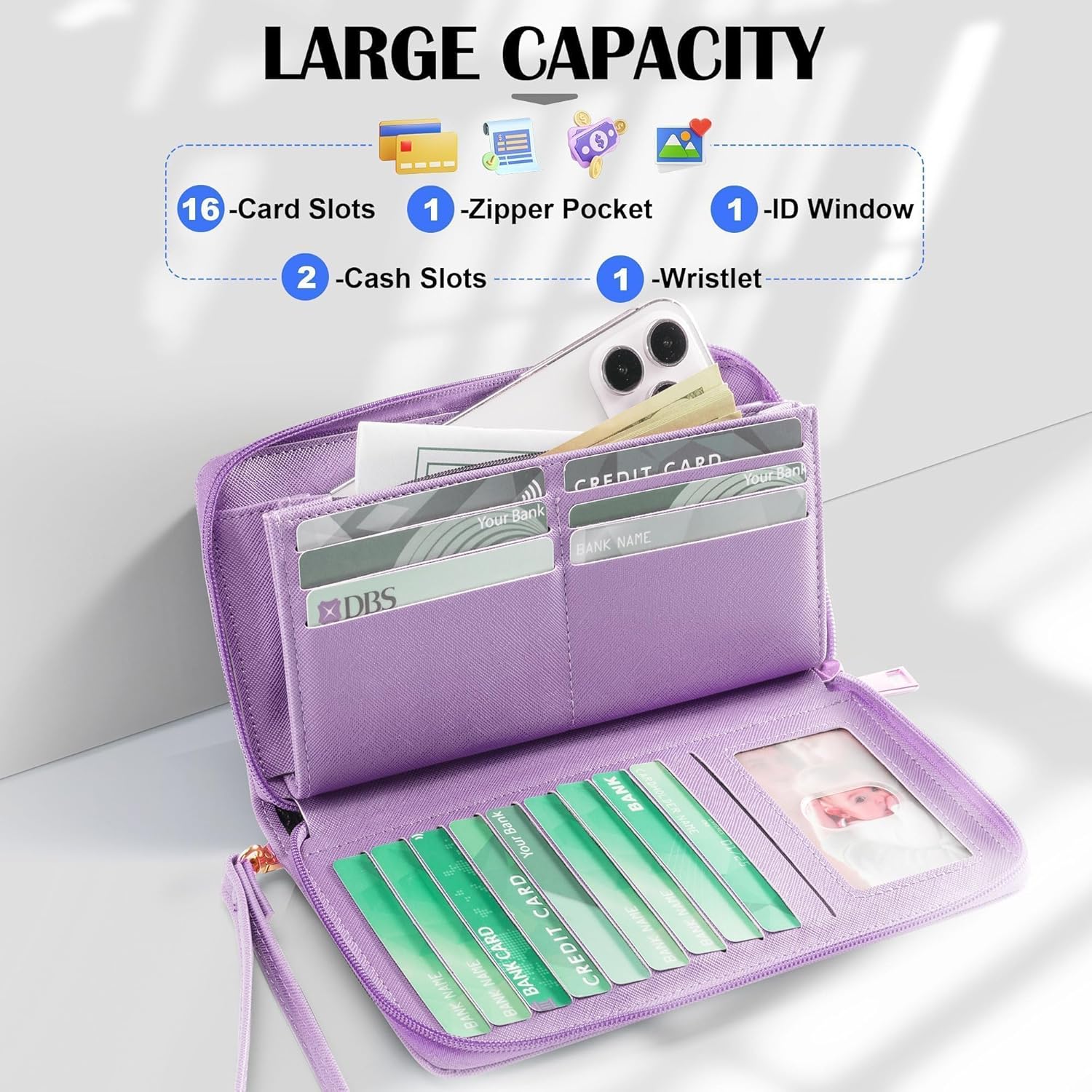 Large Capacity Wallets : 8.2″×4.5″×1″; Chelmon womens wristlet wallet has 1 ID slot, 17 card slots, 1 coin slot, 1 pen slot, and 2 long slots to hold cash, phone and passport inside.
